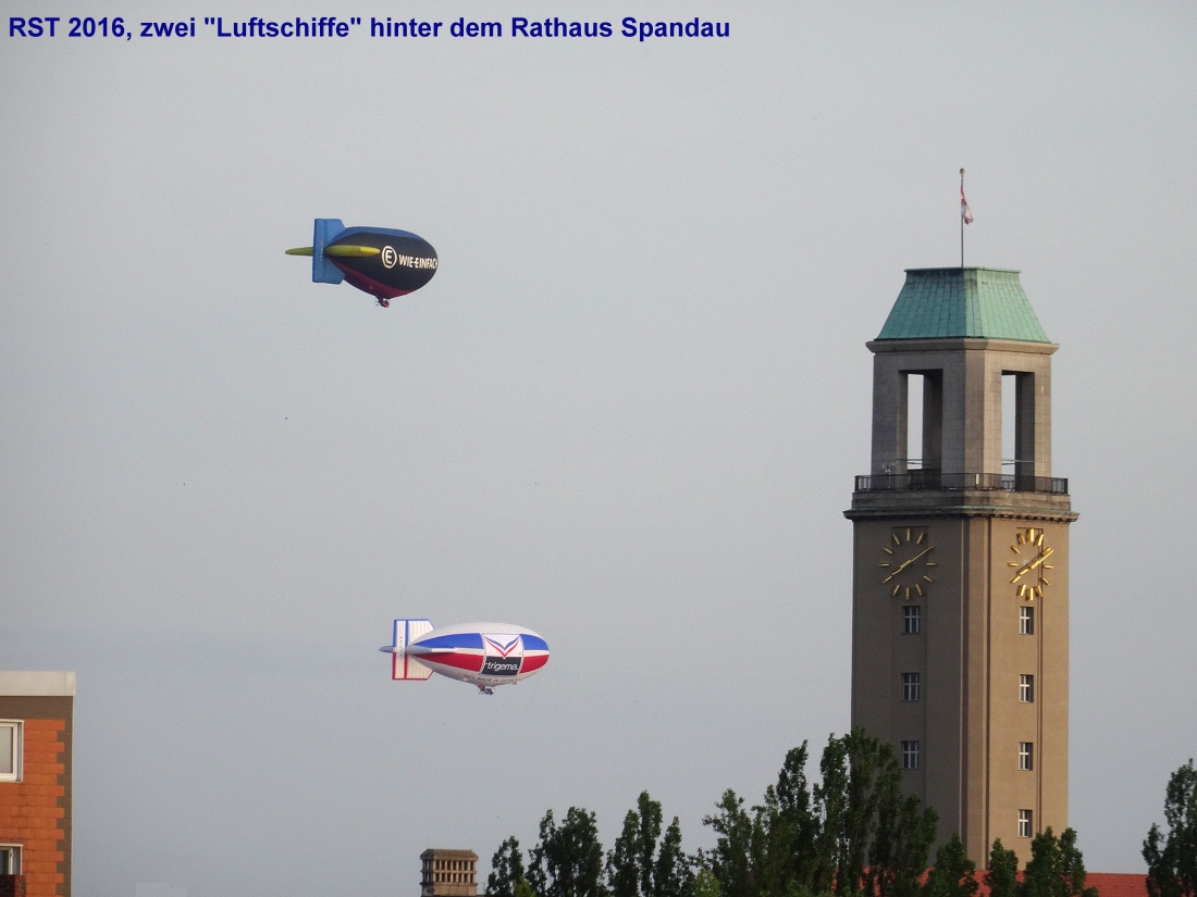 Während dieser Zeit umkreisten zwei "Pralluftschiffe" (eigentlich aber Blimps) das Stadium und nährten sich dabei auch dem Spandauer Rathaus.