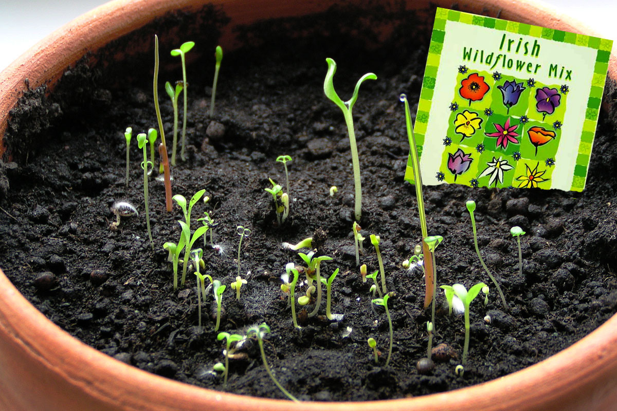 Eine Samentüte mit Irischen Wildblumen als Geschenk von der "Grünen Insel", ein großer Blumentopf und ein wenig Geduld bis es blüht - was braucht mann mehr für eine kreative bunte Bilderserie?