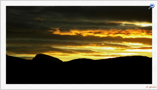 Berge, Wolken und eine tief stehende Sonne. Mehr nicht.