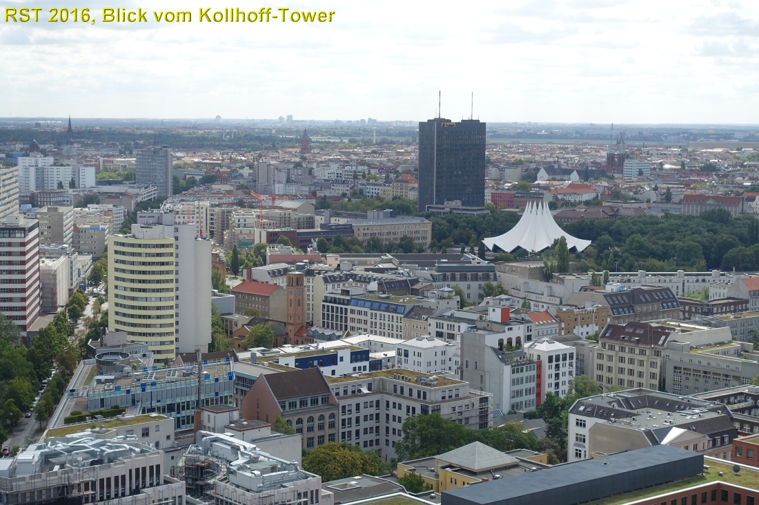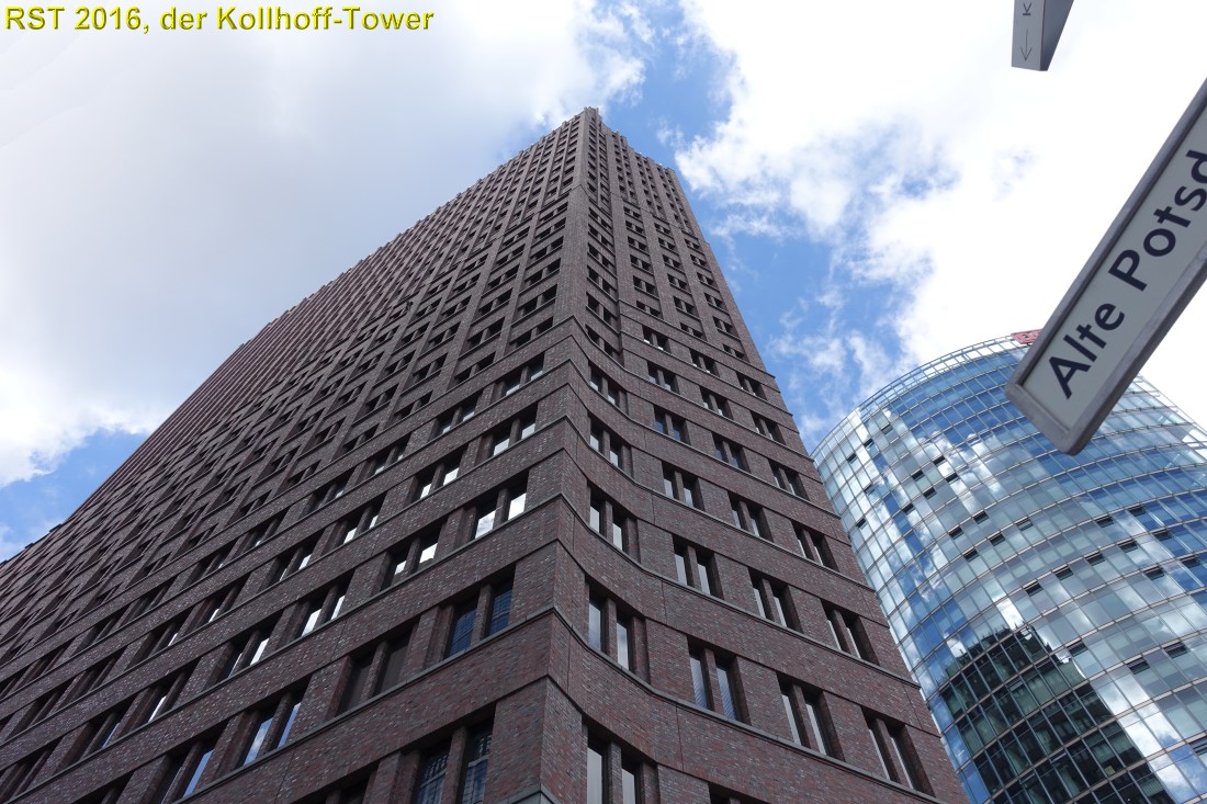 eines der Hochhäuser am Potsdamer Platz in Berlin ist der 103 Meter hohe Kollhoff-Tower. Es gibt dort eine Besucherplattform in zwei Etagen. Erreichbar mit einem der schnellsten Fahrstühle Europas.