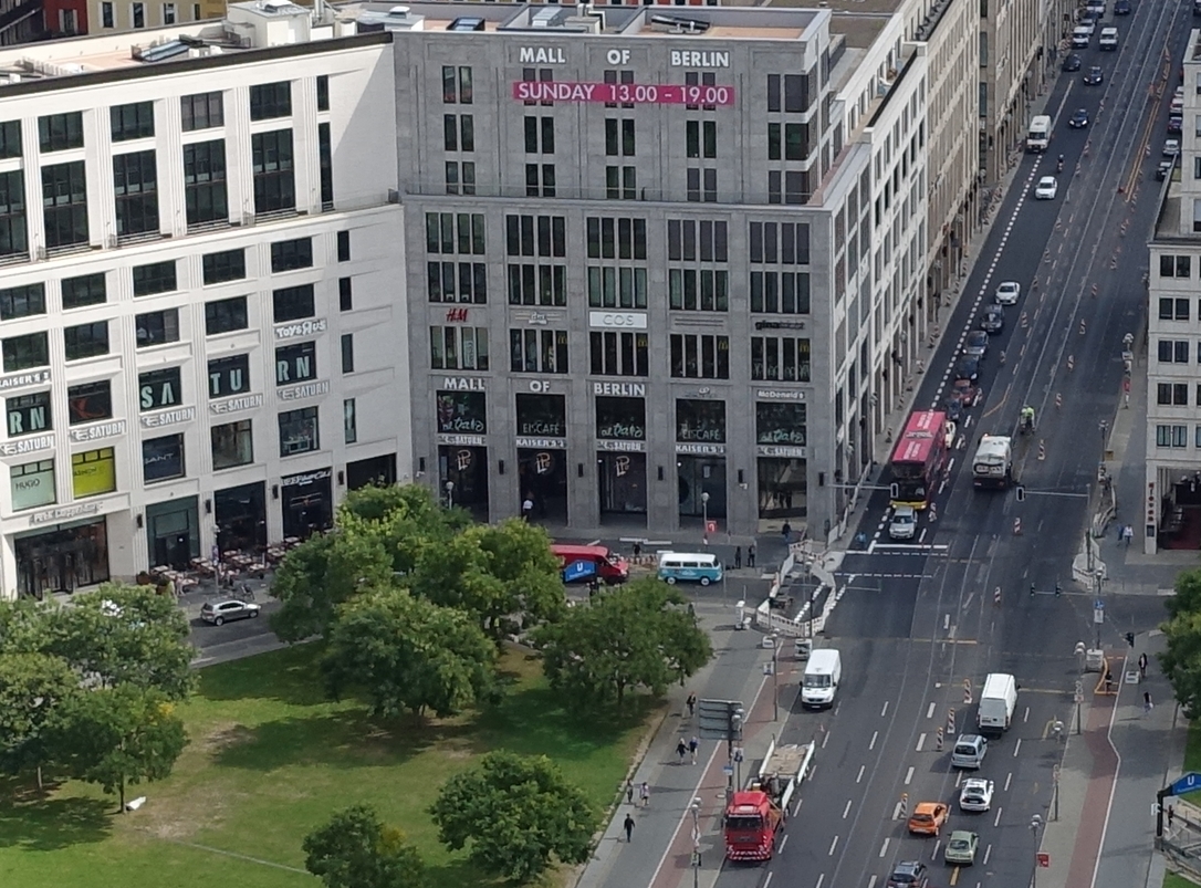 1:1 Ausschnitt aus der vorigen Aufnahme. Mitte: Mall of Berlin.