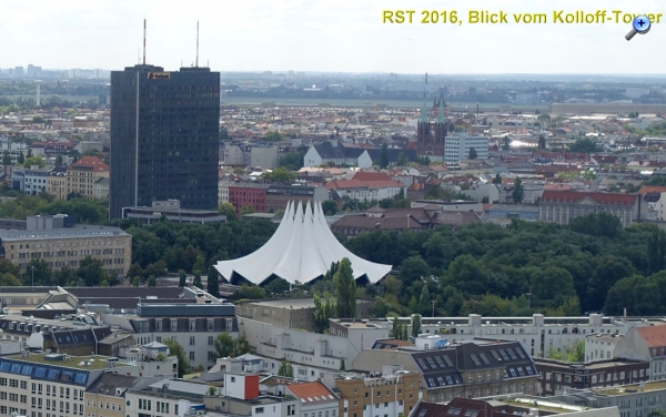 Ausschnitt: von links: Postscheckamt und Tempodrom. Rechts im Hintergrund Tempelhofer Feld (ehemaliger Flughafen)