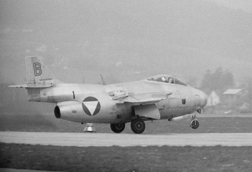 Zum Zweck der Bilder: Eine Bank wollte zum Weltspartag als Attraktion den damals aktuellen Düsenflieger des Österreiches Bundesheeres in die Schalterhalle stellen. Das war wegen der Größe (11 Meter Spannweite) des Fliegers nicht möglich. Deshalb entstanden die Fotos mit dem größten Negativformat das wir damals benutzen. Das obere Bild wurde dann auf ca. die halbe Größe des Fliegers in Schwarzweiß auf 5x2 Meter vergrößert, auf Spanplatte kaschiert und mit der Stichsäge "freigestellt", in der Halle aufgehängt.