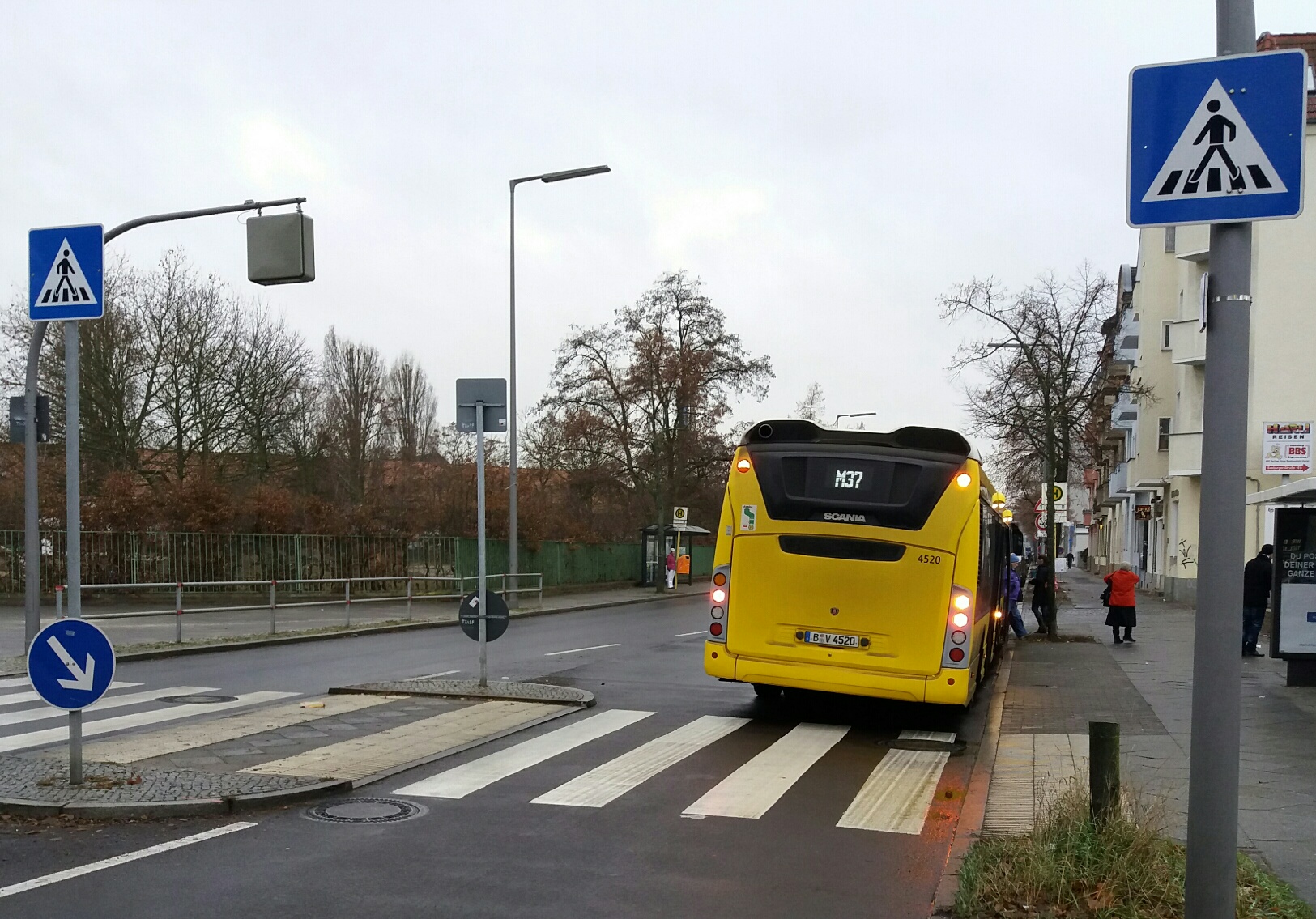 gerade gesehen in Berlin Spandau, Seeburger Str.. eine Bushaltestelle, direkt hinter einem Zebrastreifenübergang mit Mittelinsel. Hält der Bus, ist die Fahrtrichtung blockiert: Verkehrsstau.