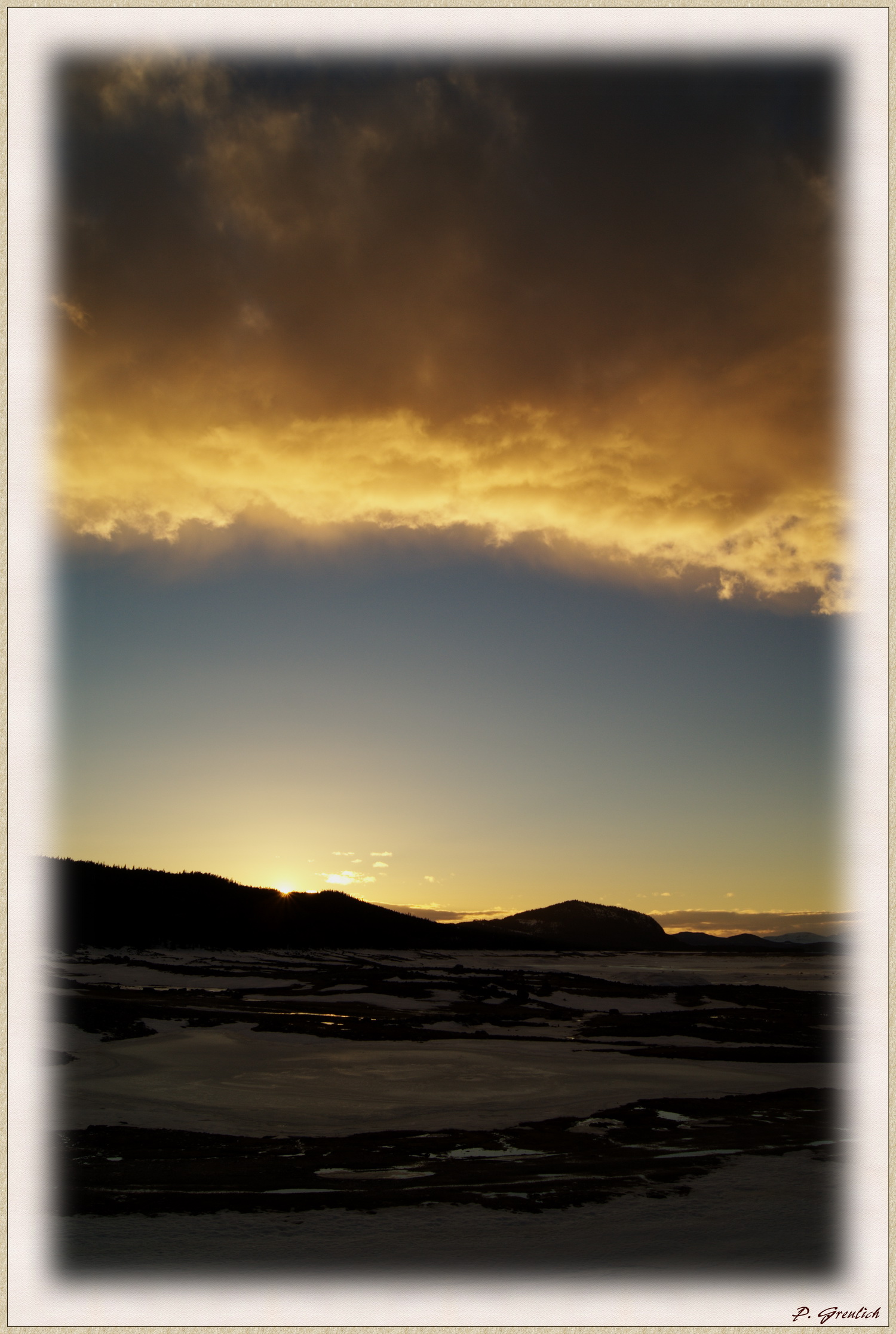Hier ein aktuelles Bild von meinem Abendspaziergang heute. Im Sommer ist das ein Stausee. Jetzt ein leeres, weites Loch in der Landschaft mit Schnee und Eis darin.