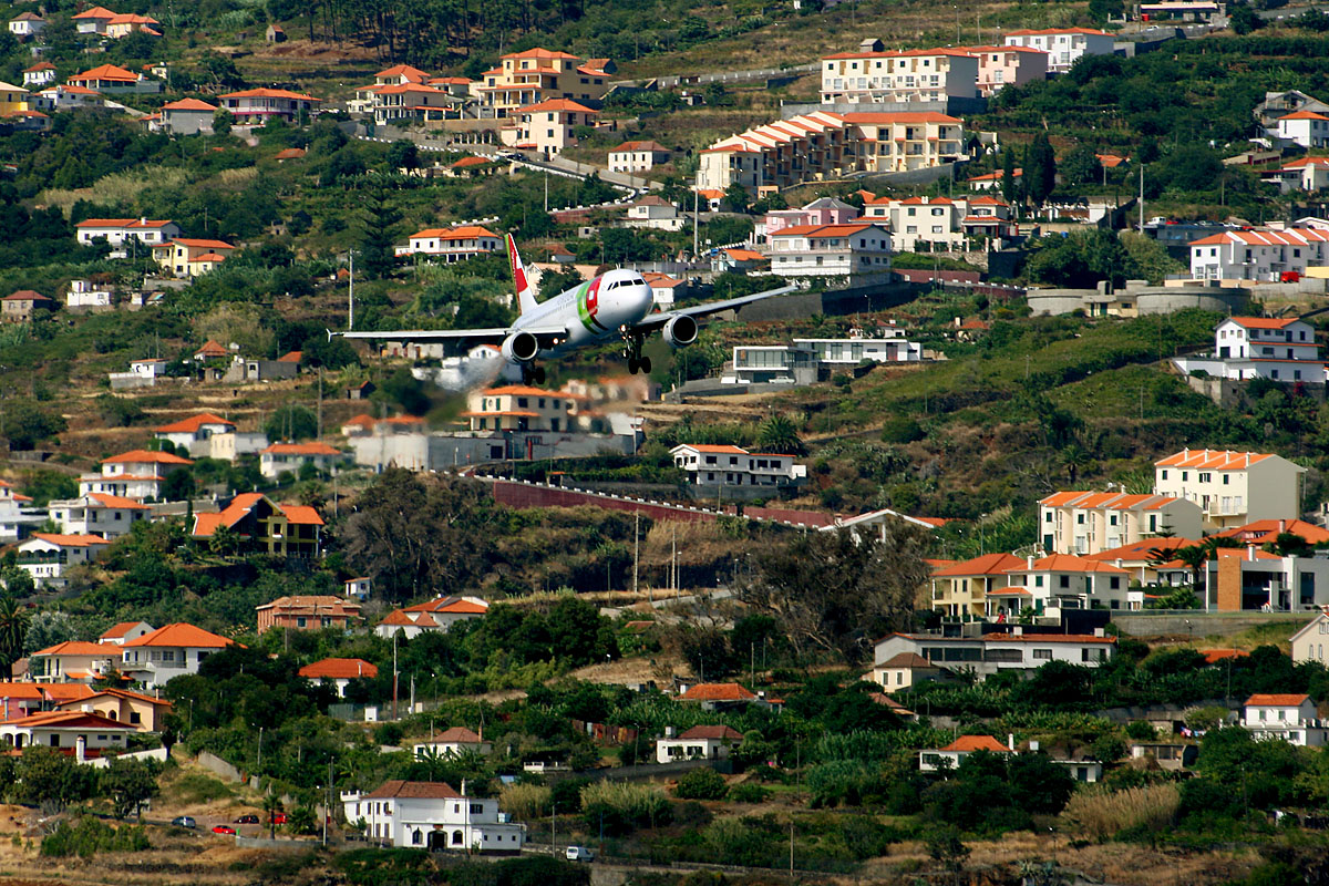 Schon der Anflug auf die Insel ist beeindruckend. Im Tiefflug auf die Häuser am Berghang zu, nach einer engen Rechtskurve dann der Anflug auf die Landebahn.