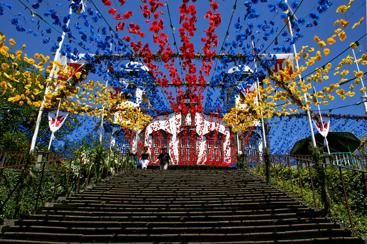 Am Marienfeiertag (15. August) werden die Kirchen mit tausenden bunten Papierblumen geschmückt. Hier die Kirche von Monte oberhalb der Stadt.