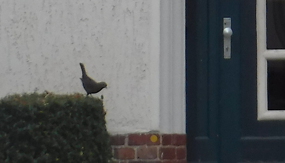 Erst bei der Bildbearbeitung gesehen: Eine Drossel.