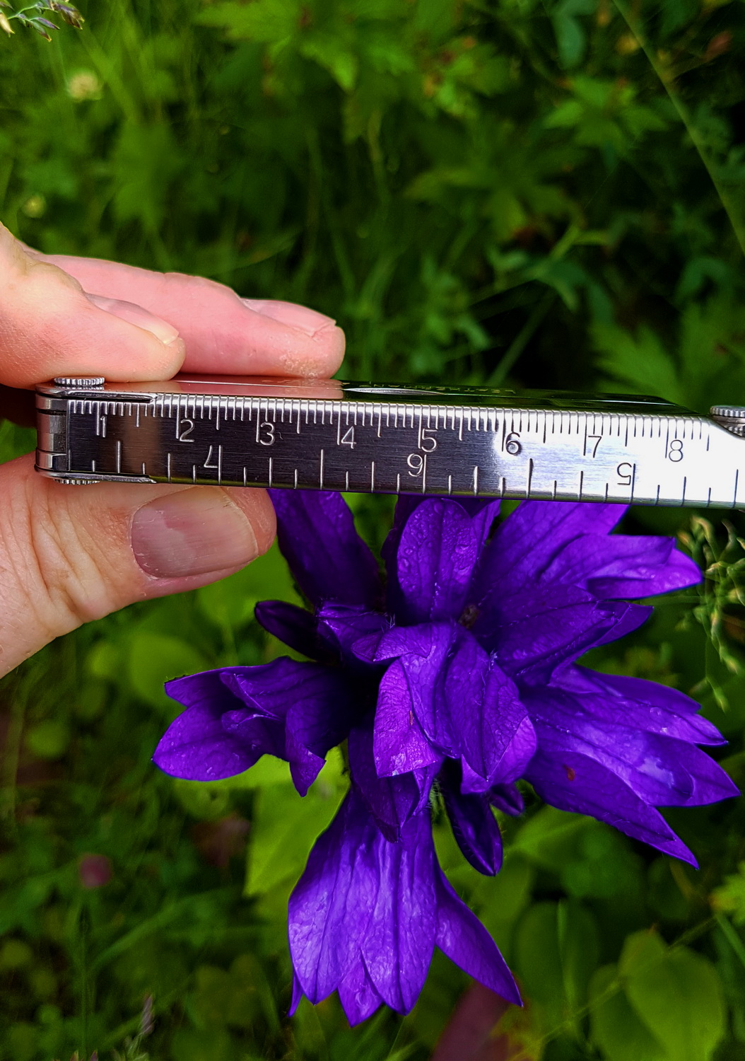 ich war heute nochmal bei der Blume... bzw. den Blumen, denn dort stehen ja mehrere. Hab mal den Maßstab meiner Klappzange daran gehalten. Die Blüten waren zwar nicht mehr so ansehnlich wie auf dem ersten Bild, aber hier sieht man die Größe deutlich. Der obere Maßstab hat eine Zentimeter-Einteilung.