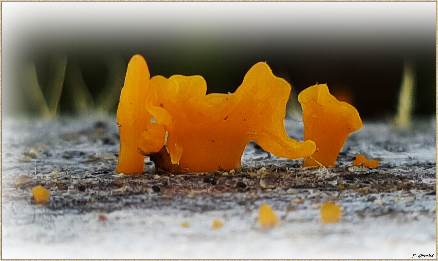 diesen ein wenig an einen Elefanten erinnernden Pilz und seine "Kumpane" fand ich auf einem verwitterten alten Baumstamm. Winzig klein, nur wenige Millimeter hoch sind sie. Mein Zaubertelefon macht in der Vergrösserung ihre Formen deutlich. Wie sie genannt werden ist mir leider nicht bekannt. Wer es weiß, darf es hier ruhig posten.