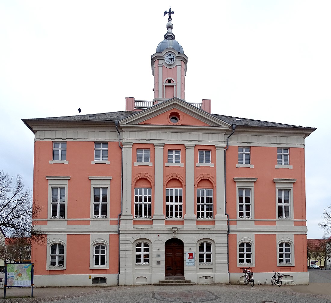 Das würde aber bedeuten, die Kamera bis Ende Mai zuhause zu lassen. Nö, das mache ich natürlich nicht. Kamera kommt mit, vielleicht findet sich ja doch ein Motiv. Gestern hatte ich in Templin, einem kleinen hübschen Städtchen in der Brandenburger Schorfheide (ca. 80 km nördlich von Berlin) etwas zu erledigen. Dabei musste ich direkt in die Stadtmitte. Am Rathausplatz (Markt-Platz) steht das kleine Rathaus von 1746. Mutig nahm ich meine Sony DSC-HX400V und machte einige Aufnahmen. Die zeige ich hier, obwohl keine Sonne, kein Laubgrün zu sehen ist ...