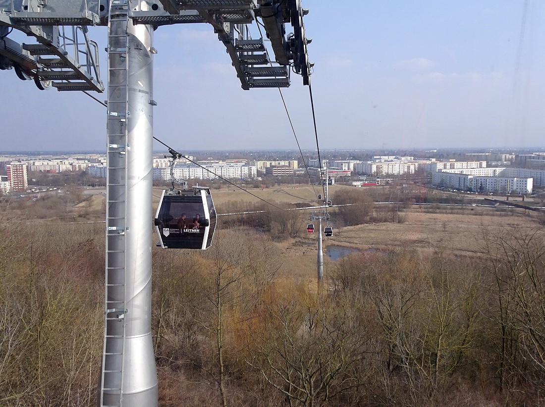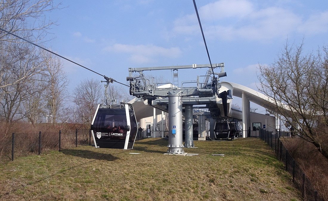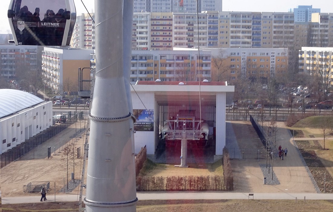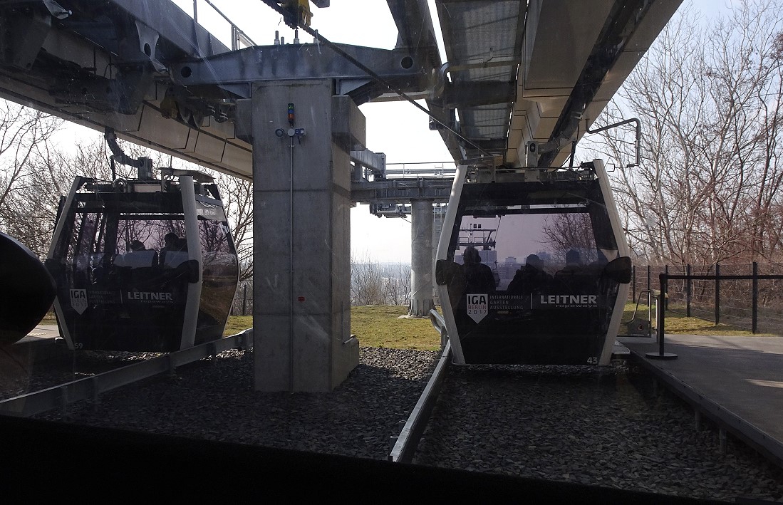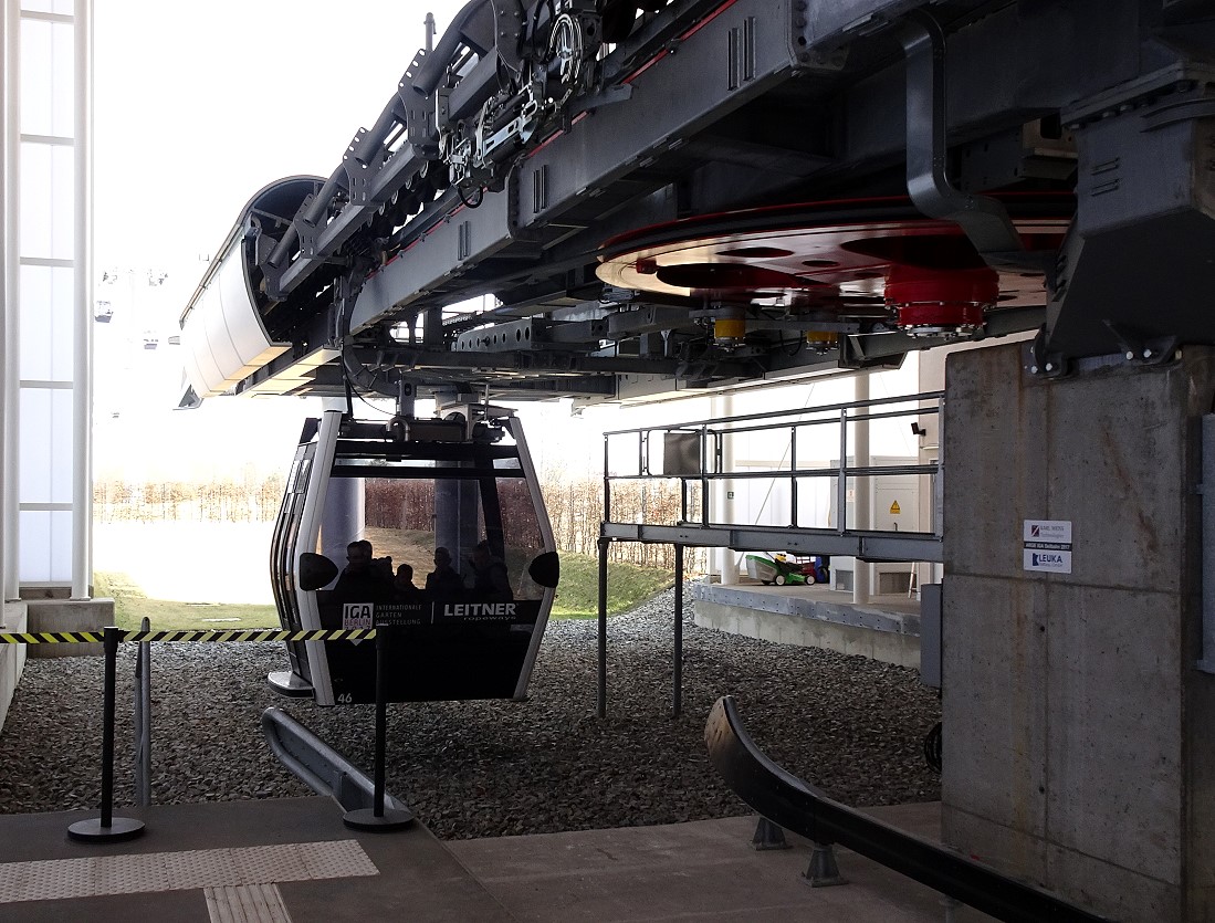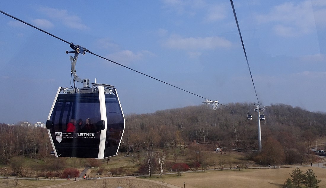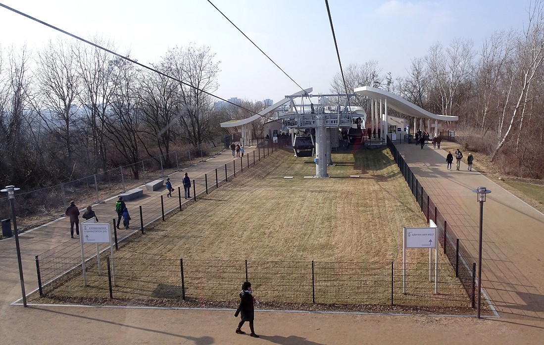 Im vorigen Jahr wurde das Gelände der "Gärten der Welt" Bestandteil der IGA (Internationale Garten-Austellung). In diesem Rahmen wurde auch eine Kabinen-Seilbahn errichtet. Diese Seilbahn überquert das gesamte Gelände mit einer Durchschnitthöhe von ca. 30 Meter über Grund. Dabei wird auch der Kienberg mt 102 Meter ü.NN. erklommen.