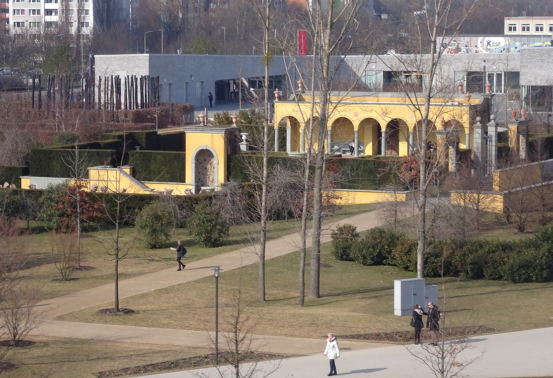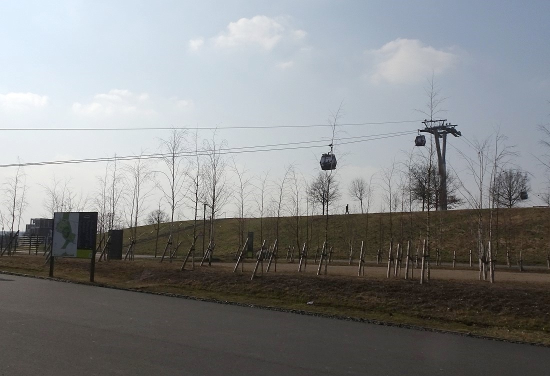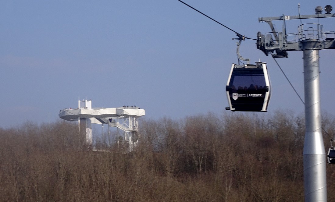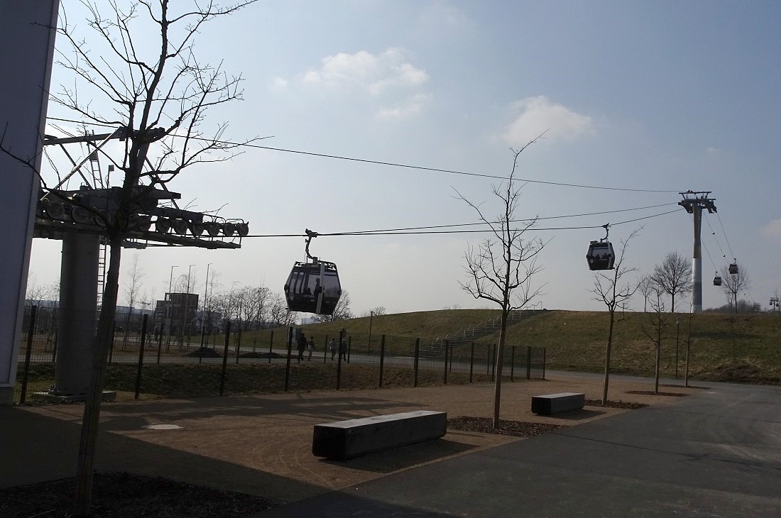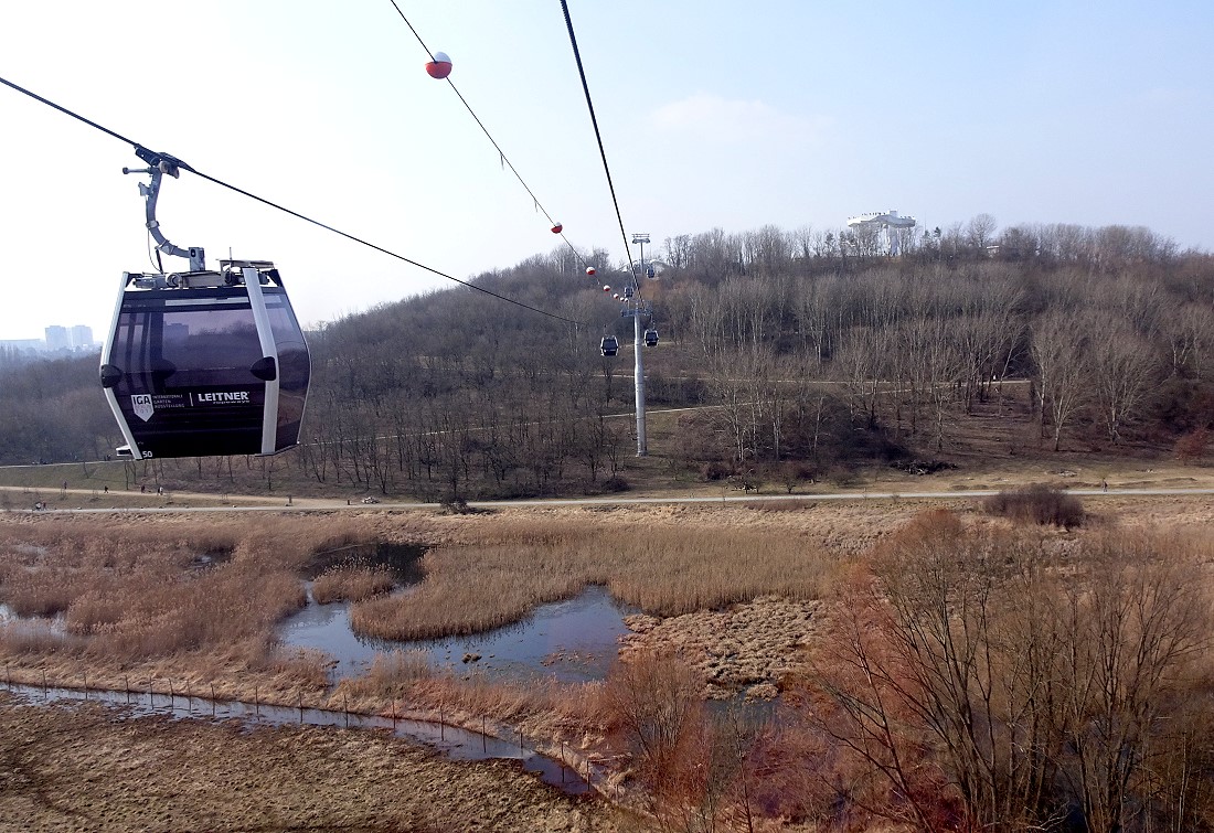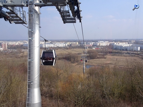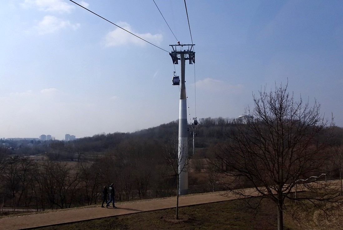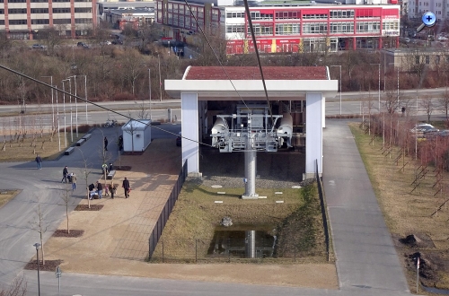 Im vorigen Jahr wurde das Gelände der "Gärten der Welt" Bestandteil der IGA (Internationale Garten-Austellung). In diesem Rahmen wurde auch eine Kabinen-Seilbahn errichtet. Diese Seilbahn überquert das gesamte Gelände mit einer Durchschnitthöhe von ca. 30 Meter über Grund. Dabei wird auch der Kienberg mt 102 Meter ü.NN. erklommen.