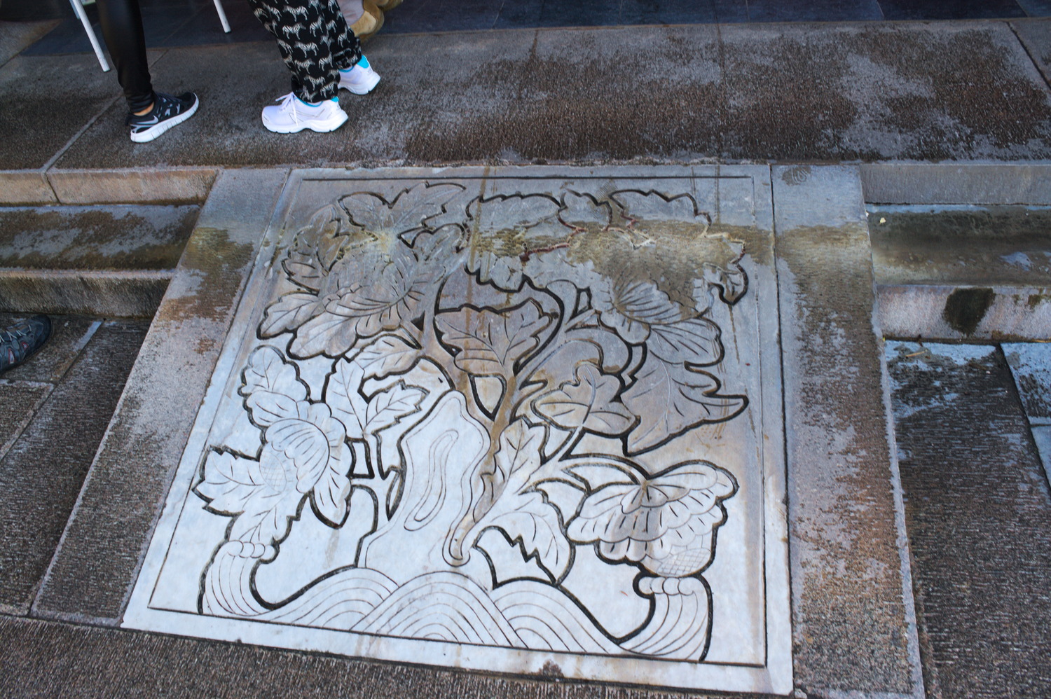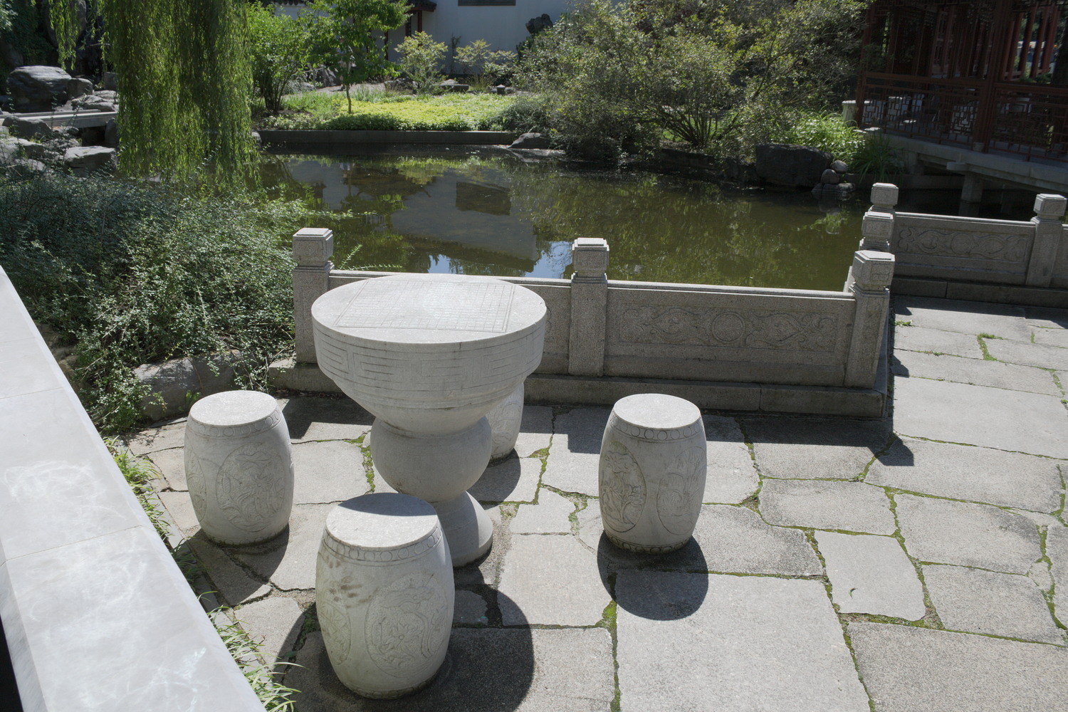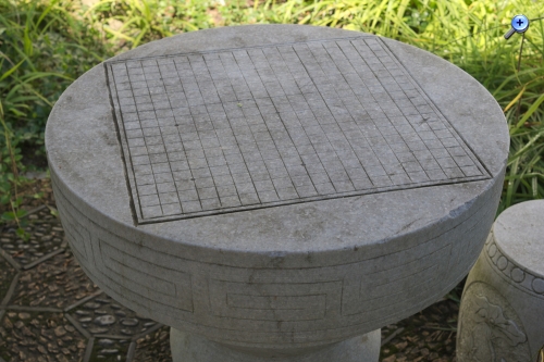 darüber, ob es angemessen ist, die kulturellen Highlights dieser Tour mit solch sportlichem Schuhwerk zu betreten .. .. ließe sich, je nachdem, wo man sich gerade befinden mag, an diesem idyllischen Platz .. .. trefflich bei einer Partie Baduk, I-Go oder Weichi überlegen, an diesem Tisch, in den freundliche Menschen bereits ein turniertaugliches Gobrett eingeschnitten haben. In Deutschland möchte ich mal soetwas sehen .. .. aber dort würde man dann einfach schnöde von Go reden ...