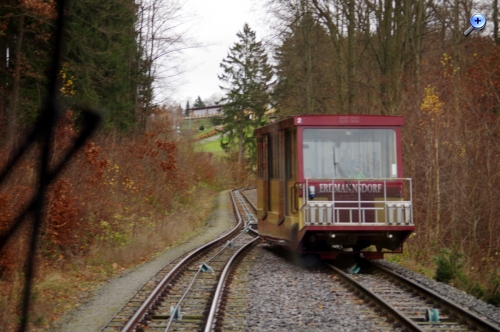 IN Augustusburg gibt es eine Drahtseilbahn, die auf Schien fährt.