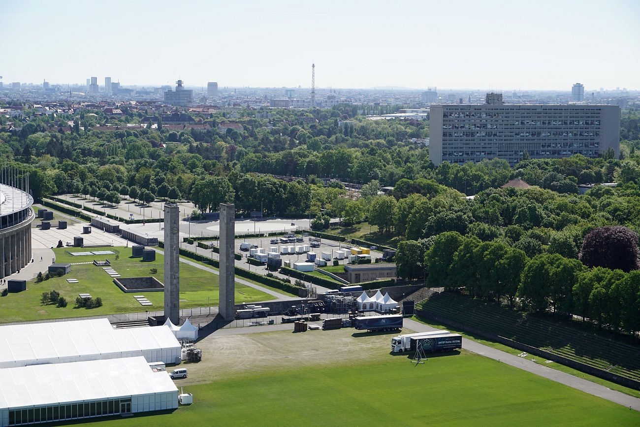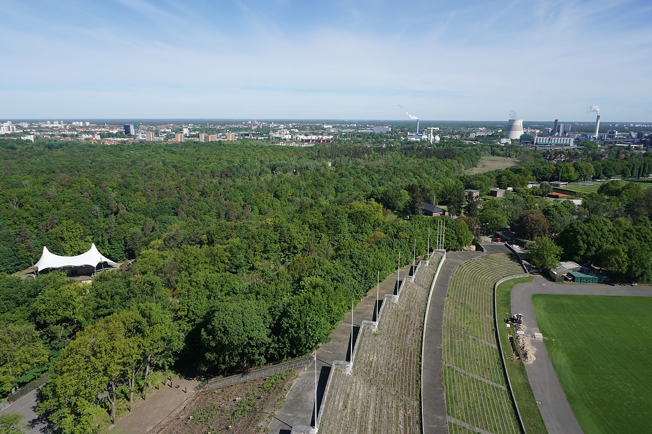 direkt westlich hinter dem Berliner Olympia-Stadium (Olympiade 1936) steht der Olympia-Turm. Er ist ca. 70 Meter hoch, ein Fahrstuhl führt nach oben. Man hat weite Sicht, da es in der Nähe kaum Gebäude gibt, die die Sicht beeinträchtigen können.