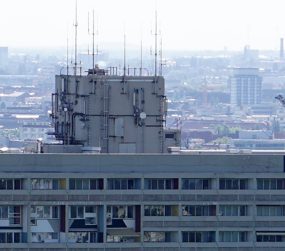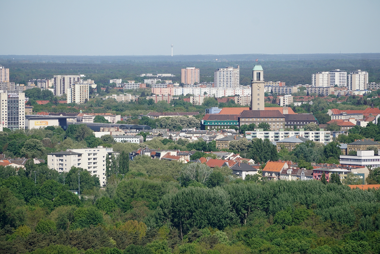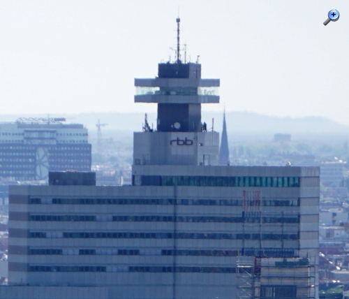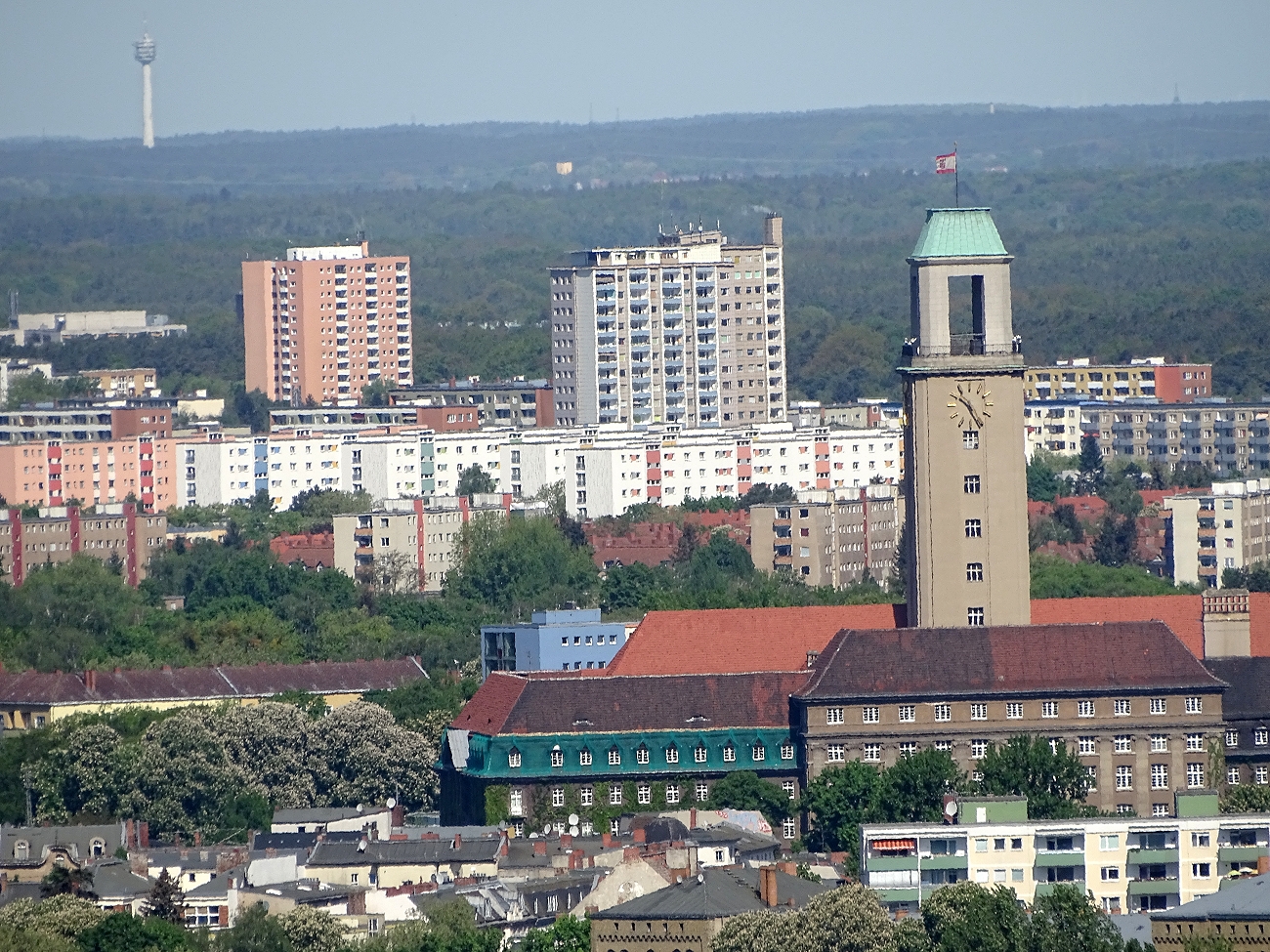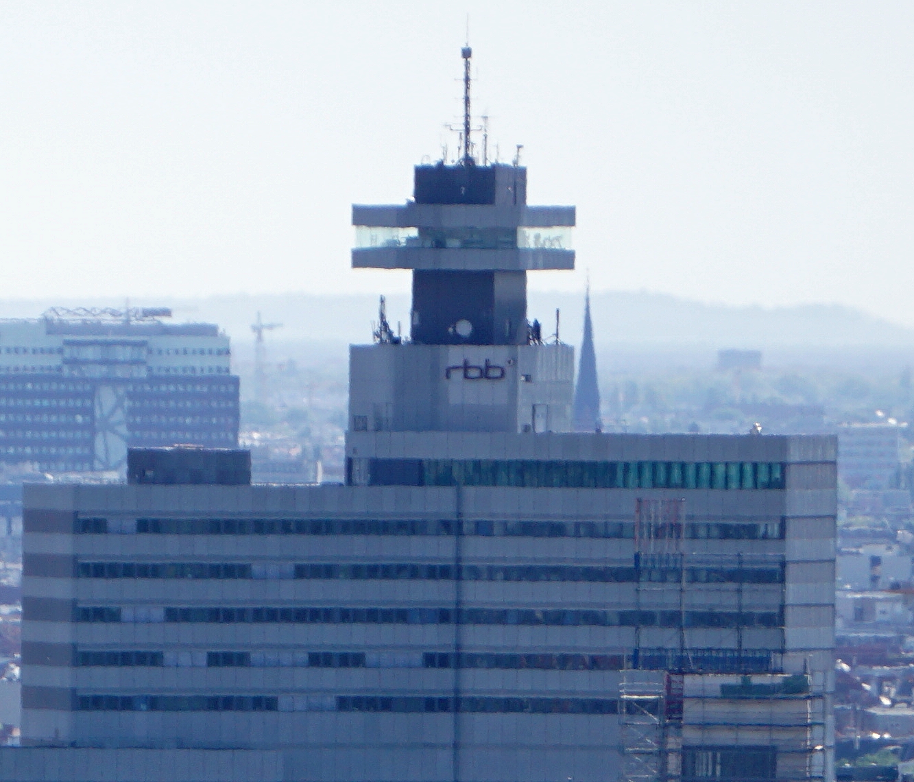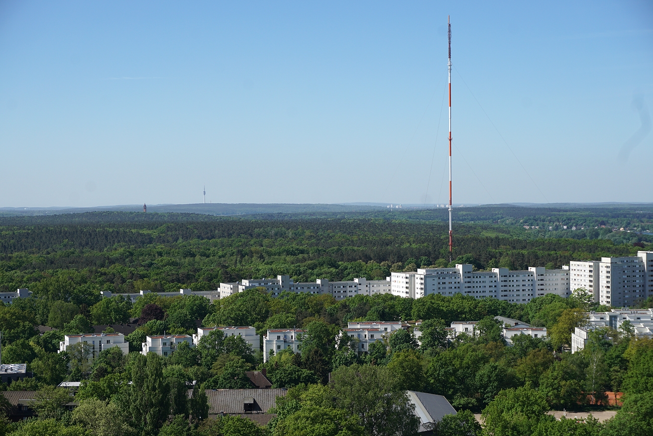 Blick in Richtung Havel / Wannsee. Im Vordergrund der RBB-TV/Radio-Sender