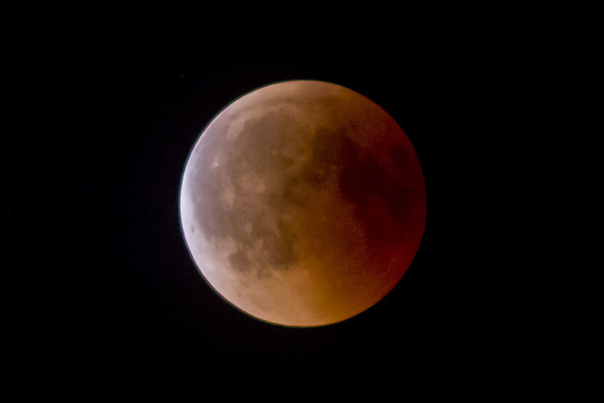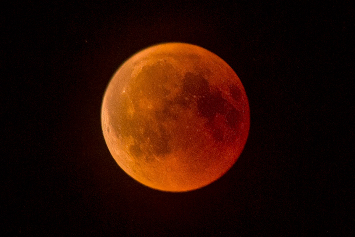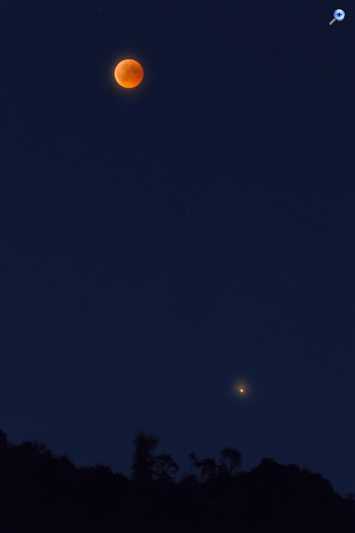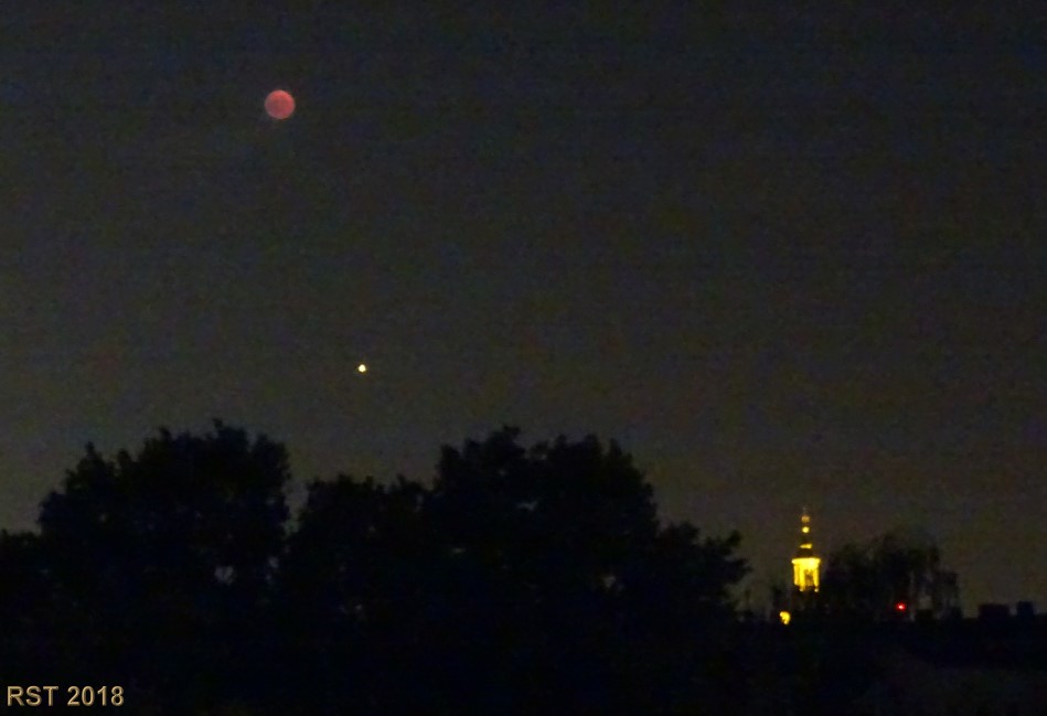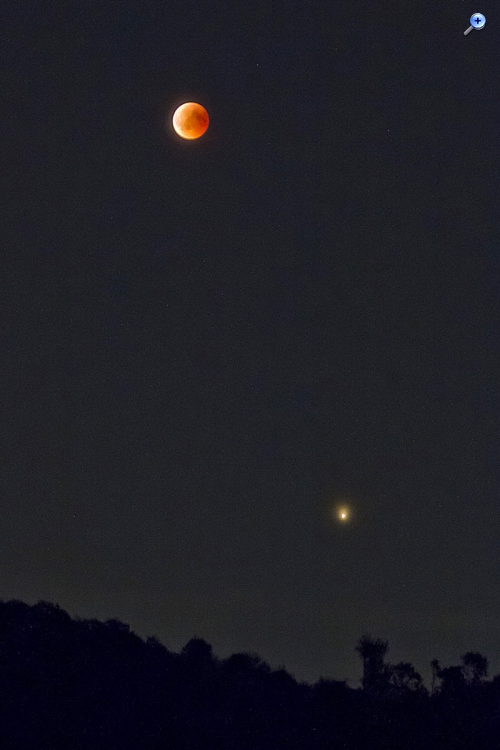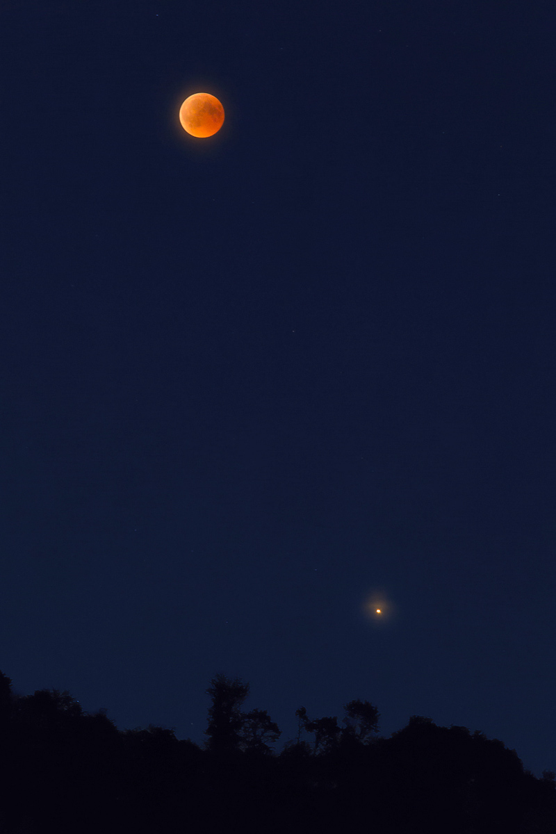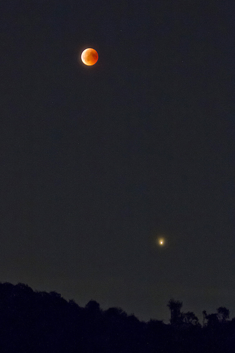 Der blutrote Mond und Mars über dem Horizont EOS 7D, Canon EF 90-300 mm (90 mm) Bl. 5,6 1 Sek. ISO 2500, RAW