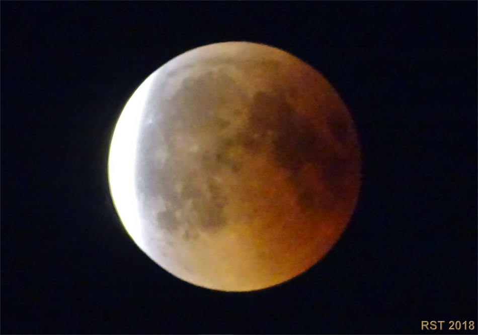 Im Oberösterreichischen Donautal waren die Beobachtungsbedingungen durch Wolken auch stark eingeschränkt. Erst gegen Ende der Totalität waren brauchbare Bilder des verfinsterten Mondes möglich. Da auch mein Sohn seine Vollformat EOS 6D mit dem hochwertigen Tamron SP Objektiv einsetzte war ein intrressanter Vergleich Vollformat versus APS-C mit einem alten 400 mm Festbrennweitenobjektiv möglich.