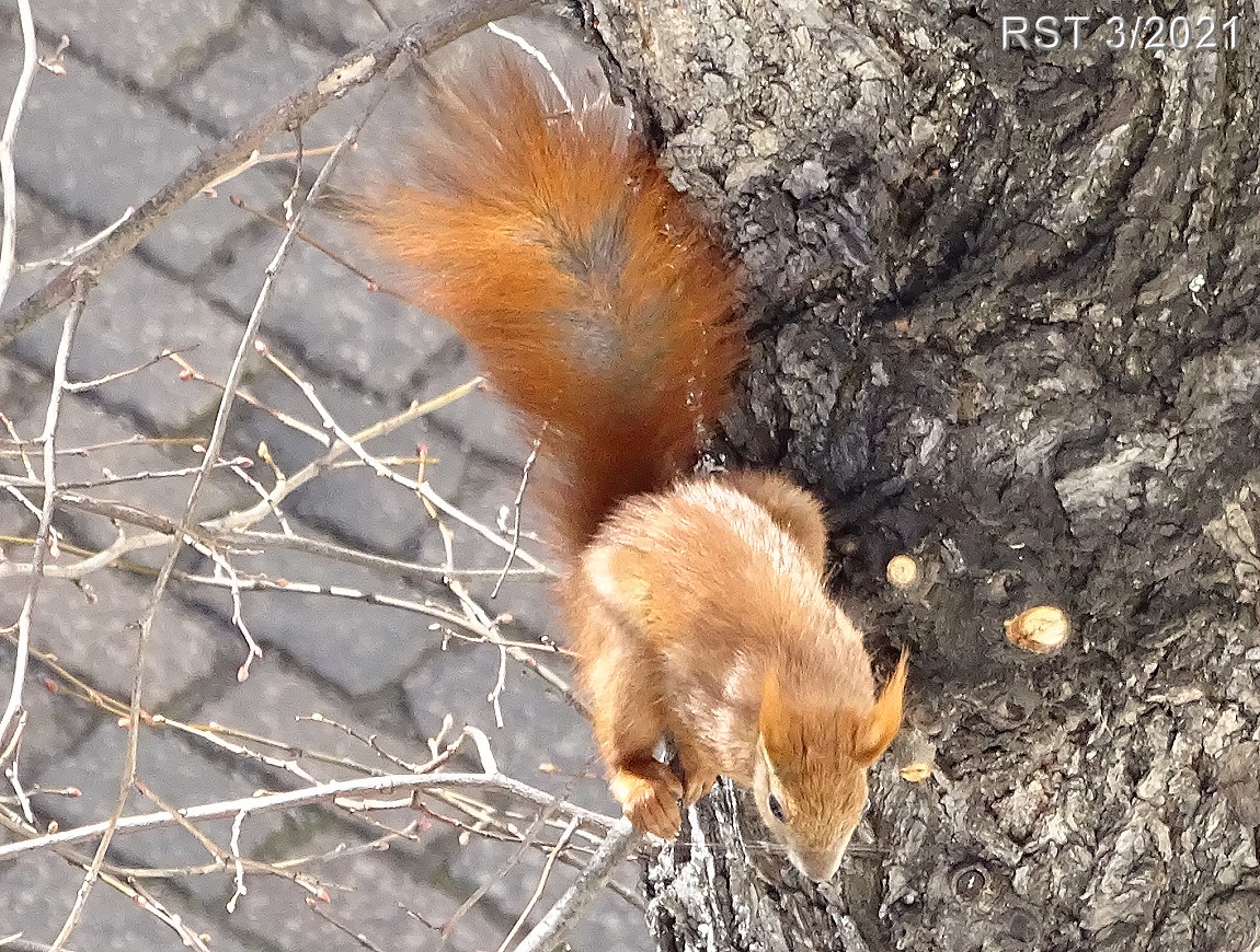 ja die Rotbraunen gelten leider schon als gefährdet durch die Amerika-Varianten. Unser Exemplar jedenfalls fühlt sich mitten in der Stadt recht wohl, scheint mit den 15-20 Bäumen, den Hinterhof-Kleinstgärten und Grünflächen ganz gut klar zu kommen ...