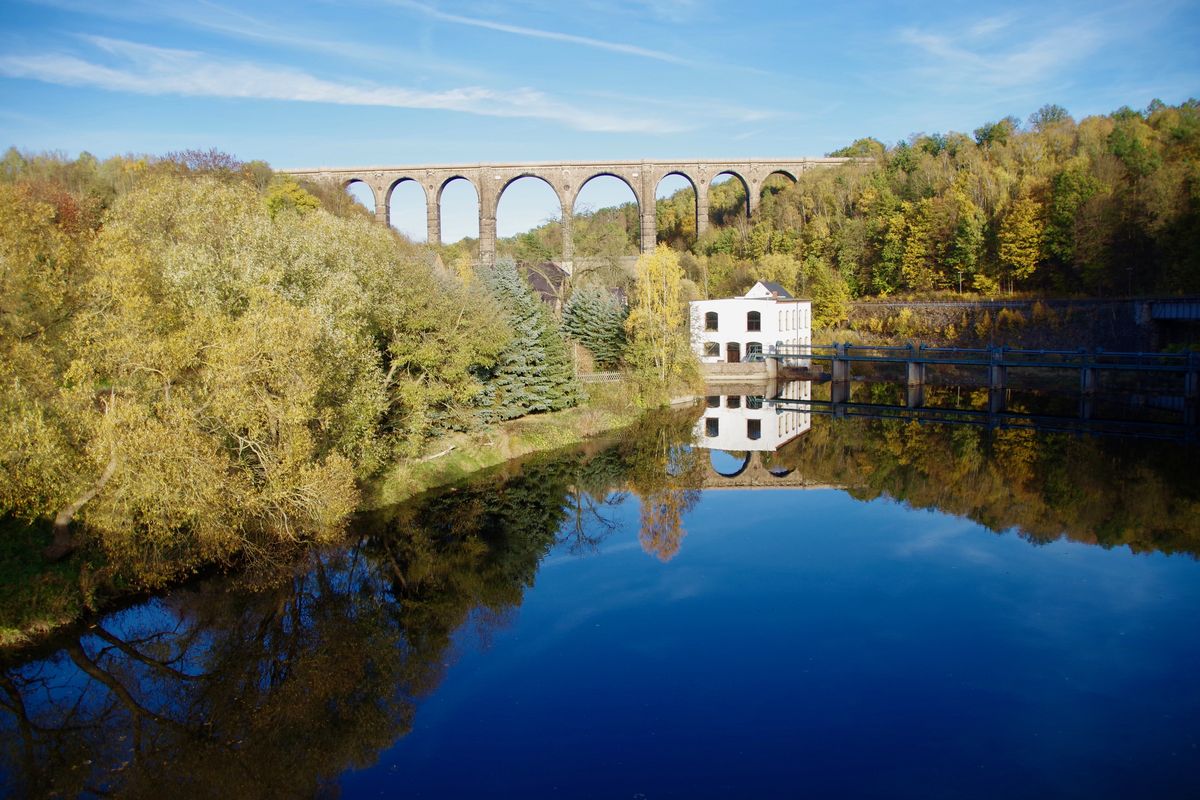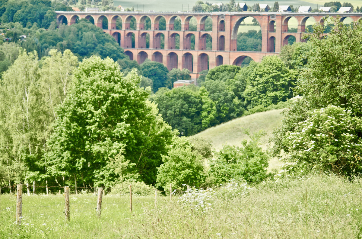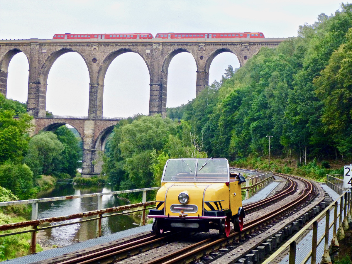 hier ein Foto von 2012, man konnte die Strecke, die unten durch das Göhrener Viadukt hindurchführt am Wochenende mit einer Draisine befahren - mit Trabbi-Motor.