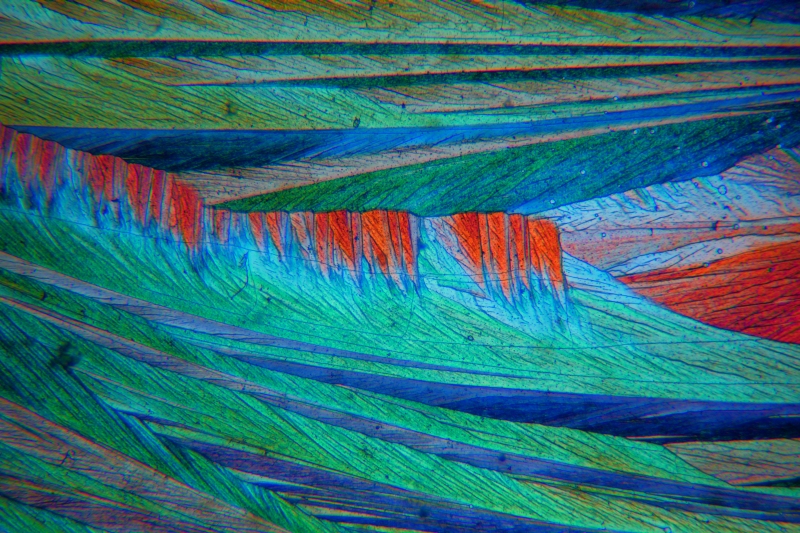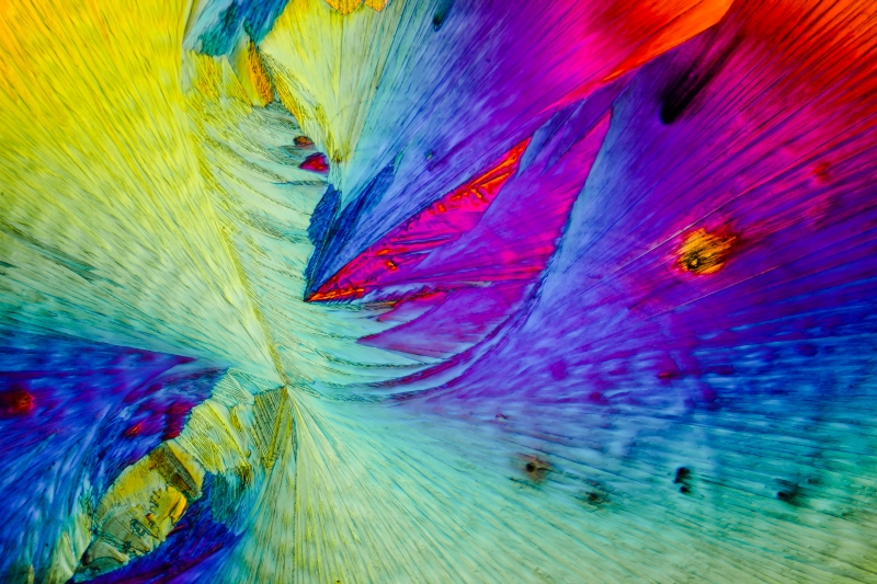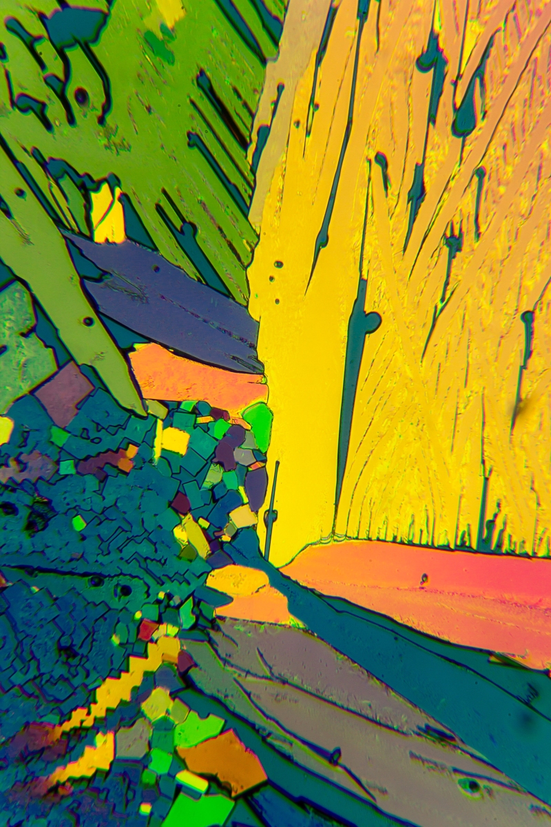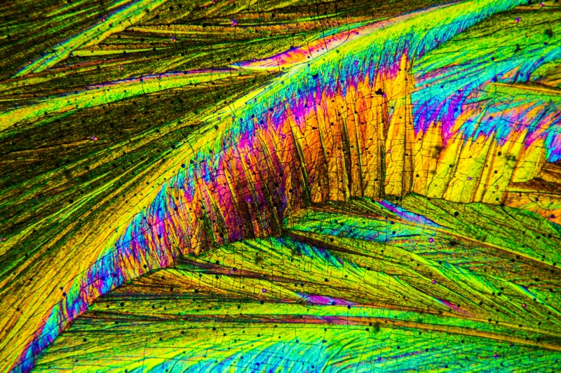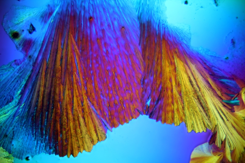 Hallo zusammen. Heute möchte ich euch eine kleine Kostprobe meiner am Mikroskop im polarisierten Licht aufgenommenen kristallisierten Chemikalien zeigen. Bald werde ich meine Aufnahmetechnik vorstellen. Ich betrachte die Art Bilder entstehen zu lassen weniger als Wissenschaft, sondern eher als eine Form des Künstlerischen. Gruss Mikesch,