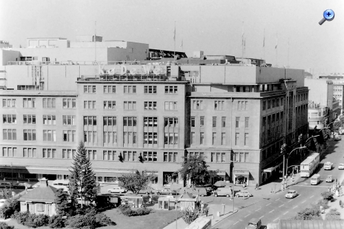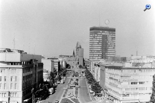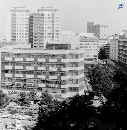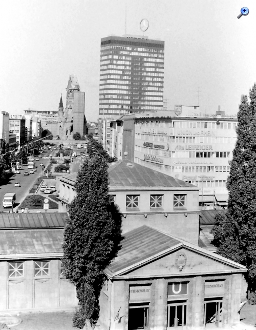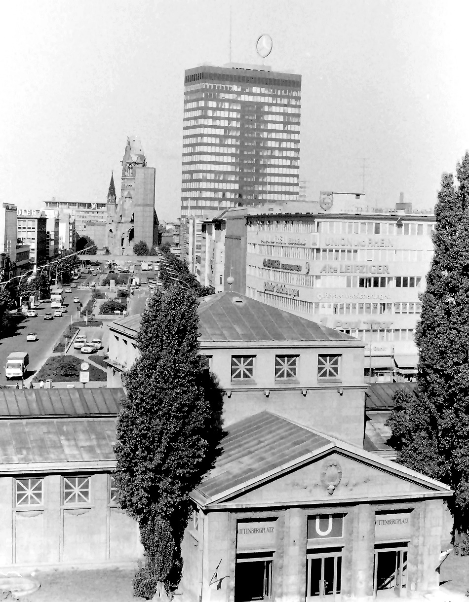 Nordseite des Wittenbergplatzes. Im Hintergrund Wohnhochhäuser und das damalige Hilton-Hotel.