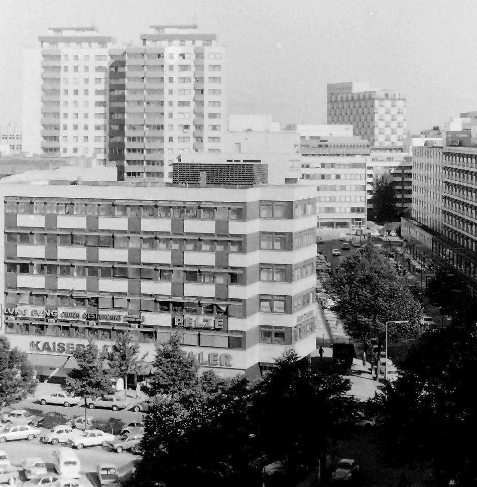 Die Urania, Kleiststraße Richtung Ost, Philips-Hochaus, mit damals noch BFG-Bank