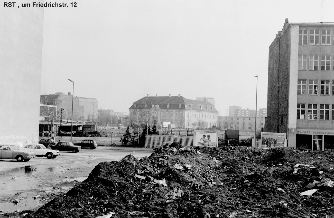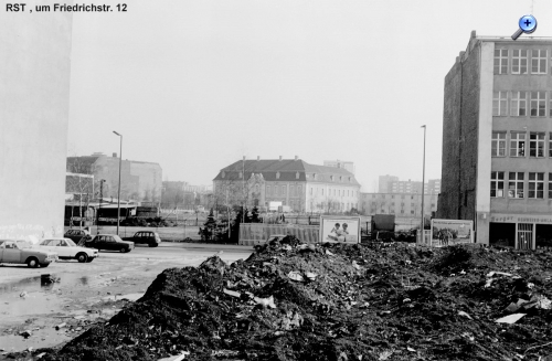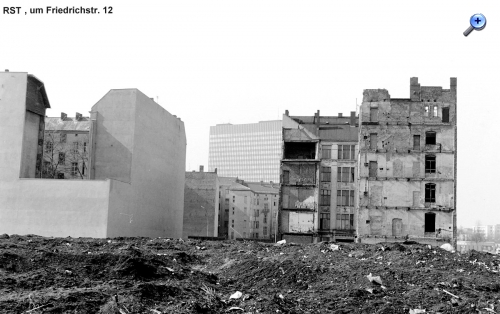 Die Ortslage Friedrichstr. 12. Hinten das damalige Berlin-Museum und jetzige juedische Museum. Das Gebiet wurde durch Hausabrisse saniert.