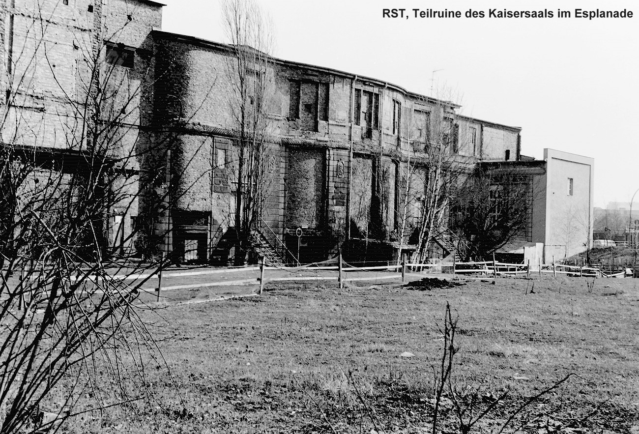 Rückseite der Teilrunine des Kaisersaals im Esplanade Hotel. Jetzt nach Verschiebung Teil des Sony-Centers am Potsdamer Platz