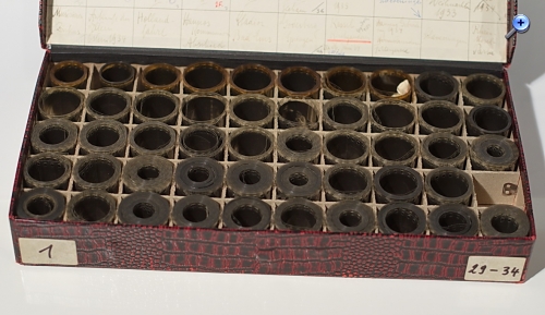 Dadurch angeregt sichte ich die von meinem Vater übernommene Fotosammlung. In dieser Schachtel befinden sich nur s/w-Positive, Schicht auf Schicht Kopien mit dem Kopiergerät ELDIA (siehe dort!)