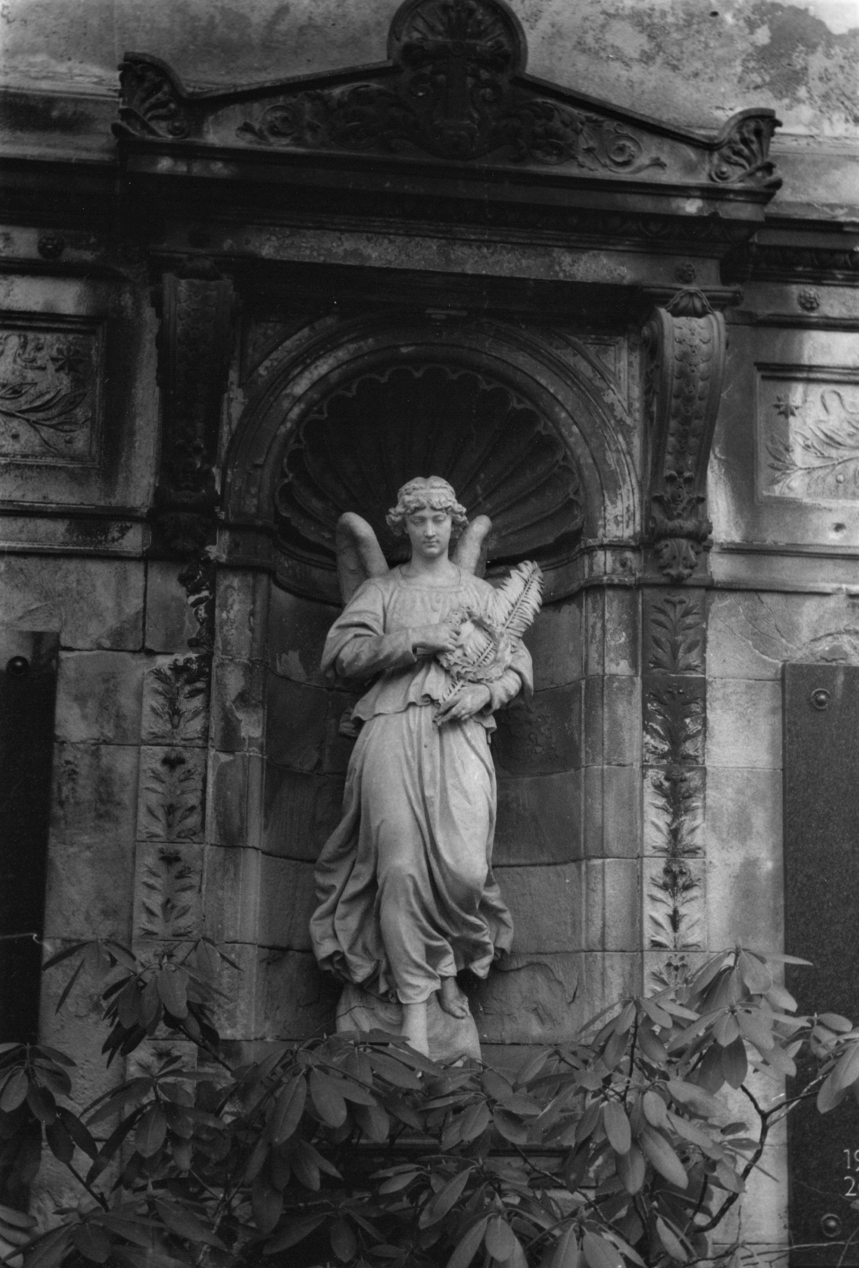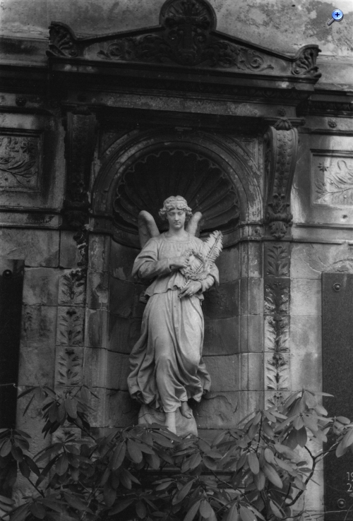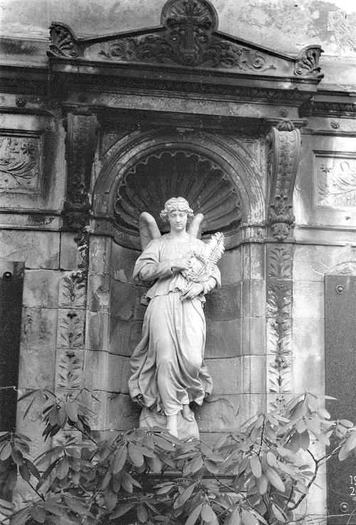 2. Die Bilder zeigen auch, welch blöde Fehler man machen kann. Beim vorausgegangenen Filmentwickeln war die Entwicklungszeit vorbei, der Entwickler ausgegossen. Nun also das Fixierbad. Es stand bereit, neben dem erst für später vorbereiteten Netzmittel. Ich greife aus Versehen zum falschen Messbecher und gieße etwas Netzmittel ein, was der Emulsion nicht gut getan hat. Daher wohl die leichten Schlieren, besonders beim Grabengel vom Alten St. Matthäus Kirchhof in Berlin. Lehrgeld halt...