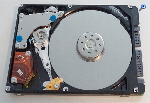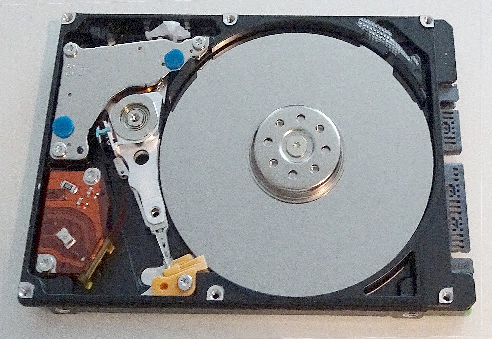 Wie dem auch sei, bei der Ausmusterung des erwähnten Laptops von 2008 (Samsung) wurde auch die eingebaute Festplatte entnommen und (neugierig) von mir geöffnet in Kenntnis, dass das das Ende besagter Platte ist. Ein wenig so, wie man als Kind einen Wecker demontiert hat, ohne zu ahnen, dass man den nie wieder zusammen bekommt.