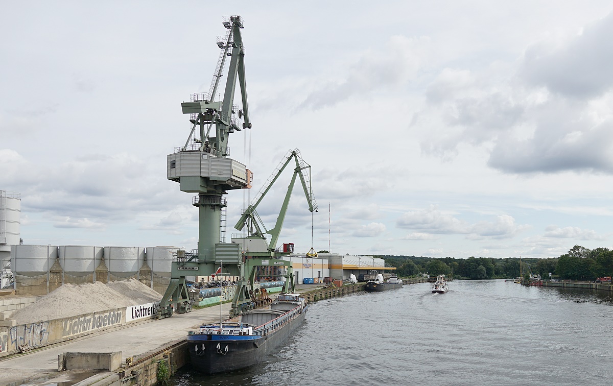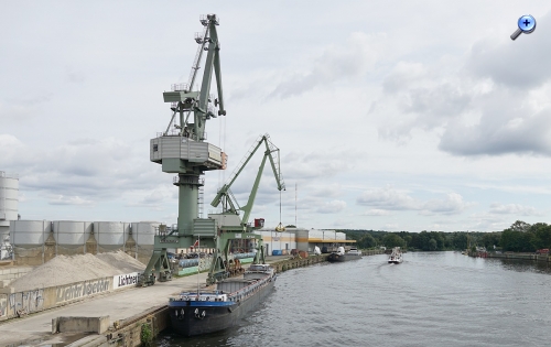 Berlin liegt an der Spree, Spandau an der Havel und an der Spree. Berlin-Spandau hat auch einen Hafen, der sogar weiter ausgebaut werden soll. Mitten im Hafengebiet überspannt die Schulenburg-Brücke die Havel, kurz nach dem die Spree in die Havel mündet.