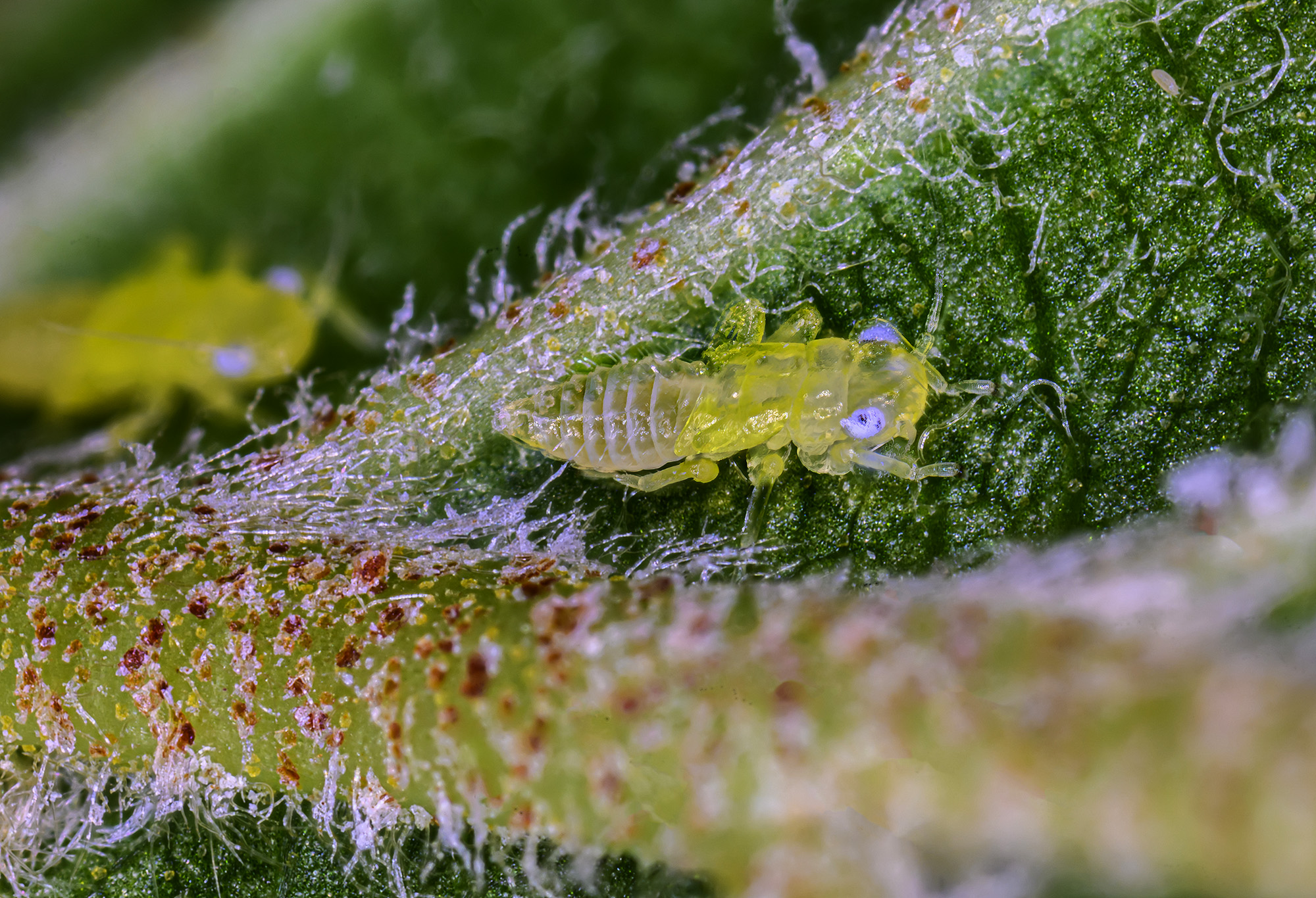 Die Aufnahmen entstanden mit. o.g. Objektiv an der Nikon Z50 II und an der Nikon Z9 auf einem Makroschlitten als Fokus-Stacks mit 10-15 Aufnahmen. Der Zweig mit dem 50mm/2,8 Macro Nikkor. Die einzelne Laus ist aufgenommen im Maßstab 5:1 und noch auf 2/3 des Bildes gecropt.