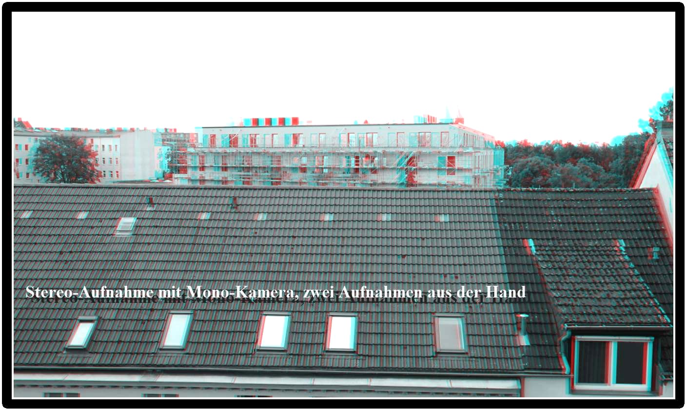 Heute mal eine echte Stereo-3D-Aufnahme mit einer Monokamera (Sony DSC-HX90) nacheinander zwei Fotos mit Basisbreite ca. 15 cm aus der Hand aufgenommen und mit StereoPhotoMaker in ein SW-Anaglyphen Bild gewandet, zur Betrachtung mit einer handelsüblichen Rot-cyan-Brille.