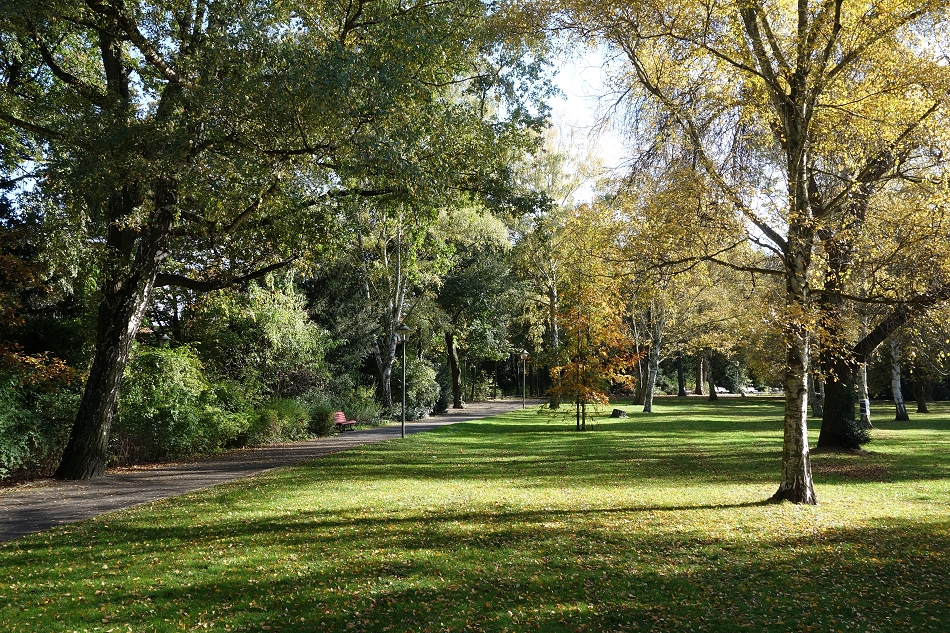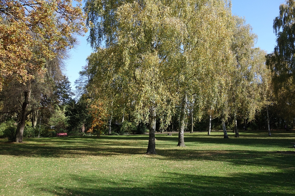 fast mitten im Berliner Ortsteil Spandau liegt der Südpark, umgeben von Hochhäusern und der großen Berliner Ost-West-Magistrale die hier "Heerstraße" heißt. Trotzdem ist man schon nach wenigen Schritten - insbesondere jetzt im Herbst - in Stille und Abgeschiedenheit. Lohnt es sich ein paar Bäume mit Herbstlaubfärbung ohne Aktion im Motiv zu photographieren?