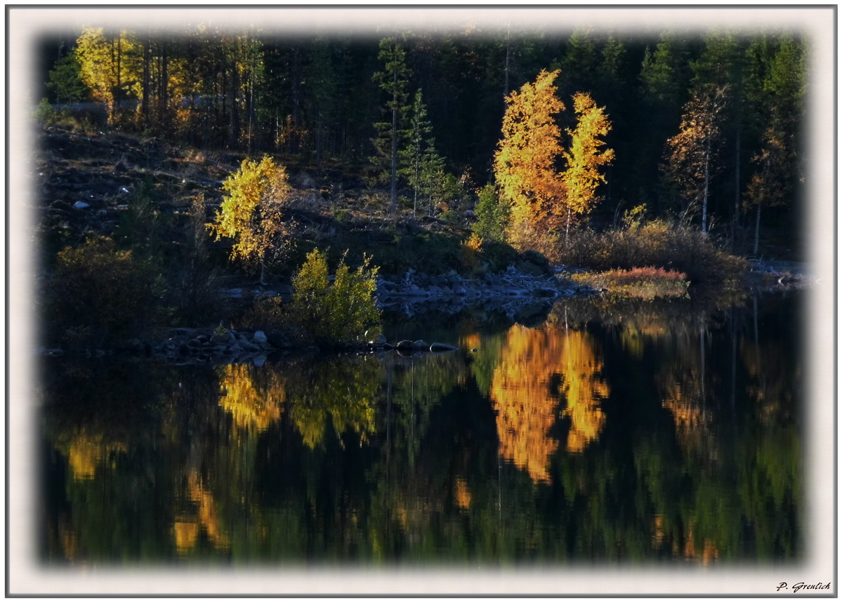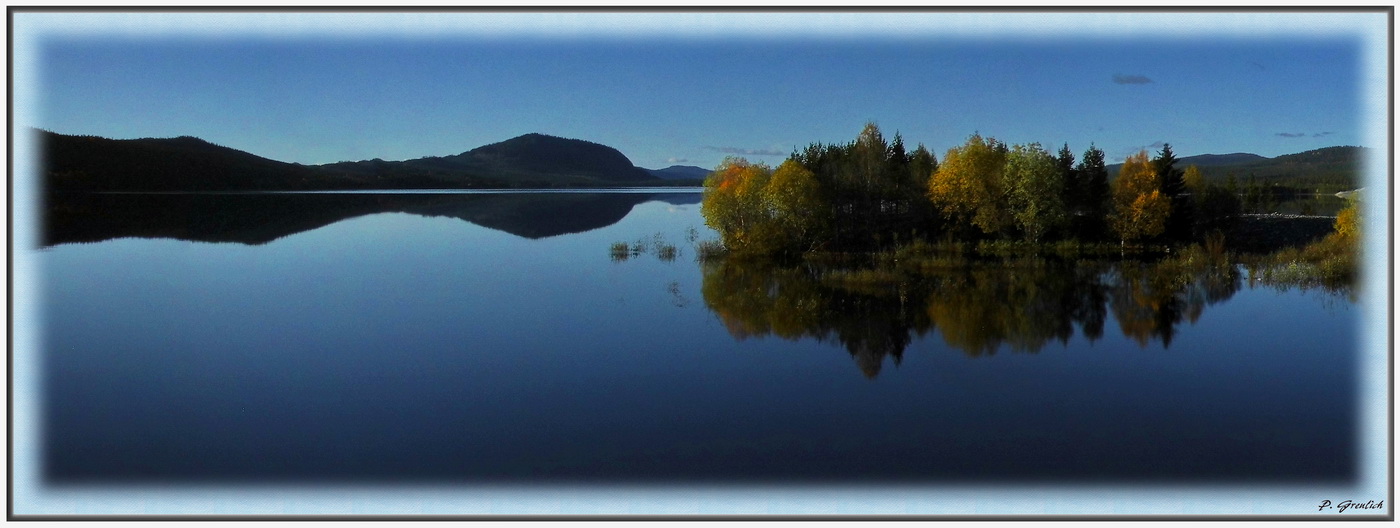 Man beachte den "gut" sichtbaren Reiher in der Bildmitte auf der kleinen Insel!
