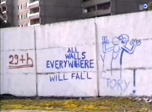 Deine Fotos von der Mauer Öffnung sind gut gemacht. Weit ab vom knipsen und nicht einfach die Kamera irgend wo hingehalten. Auch die Screenshots des Videos sind interessant. Ich habe dazu die Frage ob das mit einer High-8 Kamera aufgenommen wurde.
