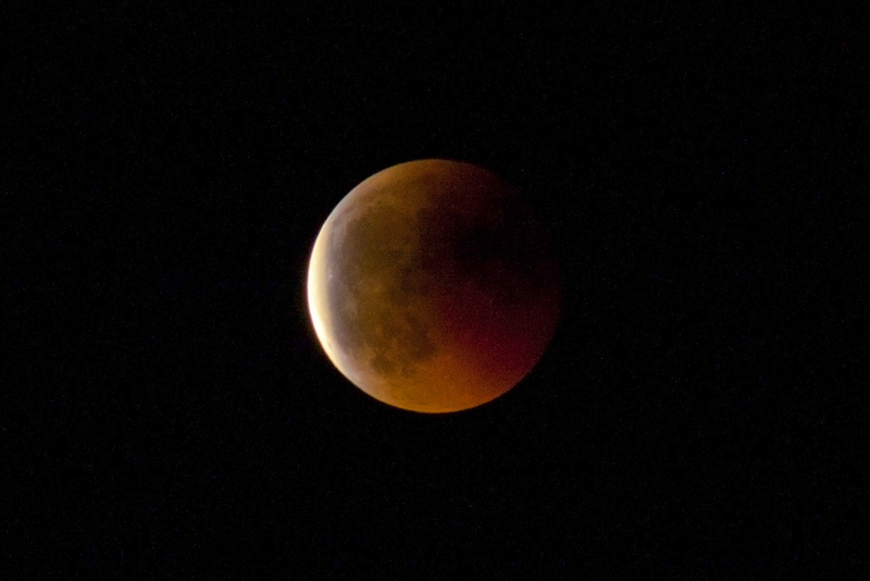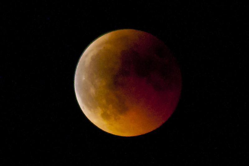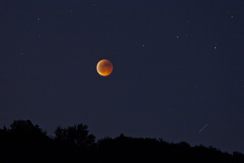 Die totale Mondfinsternis heute Nacht stellte eine photographische Herausforderung dar. Wergen des sehr dunkelroten Mondes während der Totalitätsphase waren sehr lange Belichtungszeiten oder sehr hohe ASA-Einstellungen erforderlich. Bei langer Belichtungszeit (bis zu 15 sek bei 100 ASA) wurde der Mond durch die Erdrotation verwischt dargestellt, bei 1600 ASA steigt das Bildrauschen extrem an. Hier meine Bilder, die einen Kompromiss darstellen:
