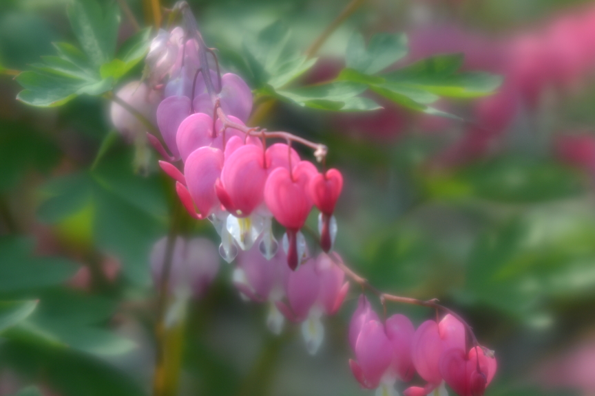Das "Tränende Herz" mit dem hervorgehobenen mittleren Blütenteil und dem sachten Übergang ins Unscharfe ist schon gut gelungen!