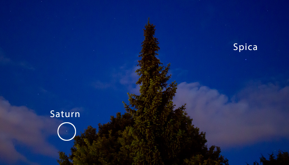 Der Saturn am südlichen Nachthimmel um 22:00 Uhr in Puchenau im Donautal 35 mm Objektiv, ISO 3200, Bl. 4,5, 1,5 sek. Belichtungszeit
