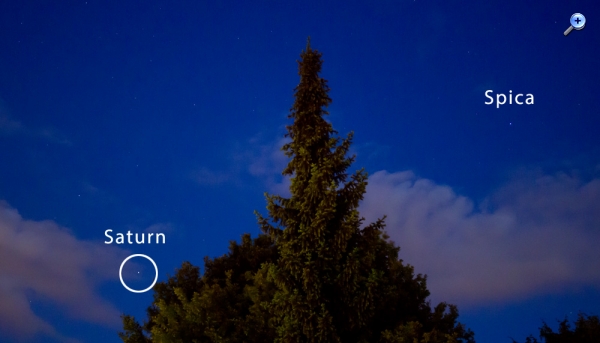 Zur Zeit steht der Riesenplanet Saturn am Abend gut sichtbar am Südhimmel. Im 10-fach Fernglas erkennt man den Ringplaneten als kleines "Scheibchen". Das hat mich angeregt, mit einem Testphoto mit dem Tokina 400 mm Objektiv an der EOS 600 D zu versuchen, ob der Planet erkennbar ist.