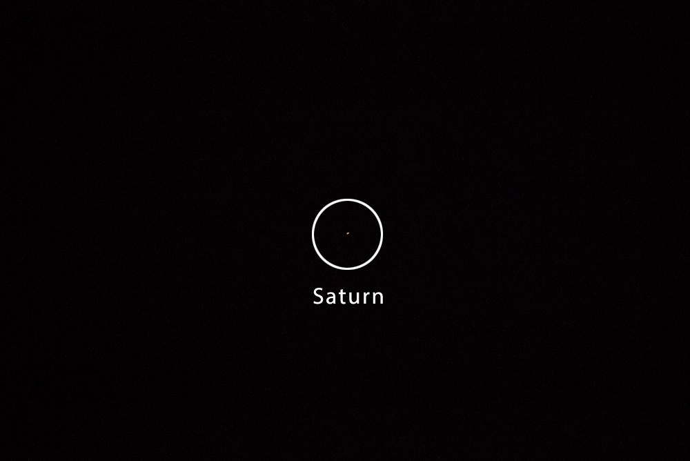 Selbst mit dem 400 mm Objektiv wird der Saturn nur winzig klein abgebildet (Volles Aufnahmeformat 5184 x 3456 Pixel)