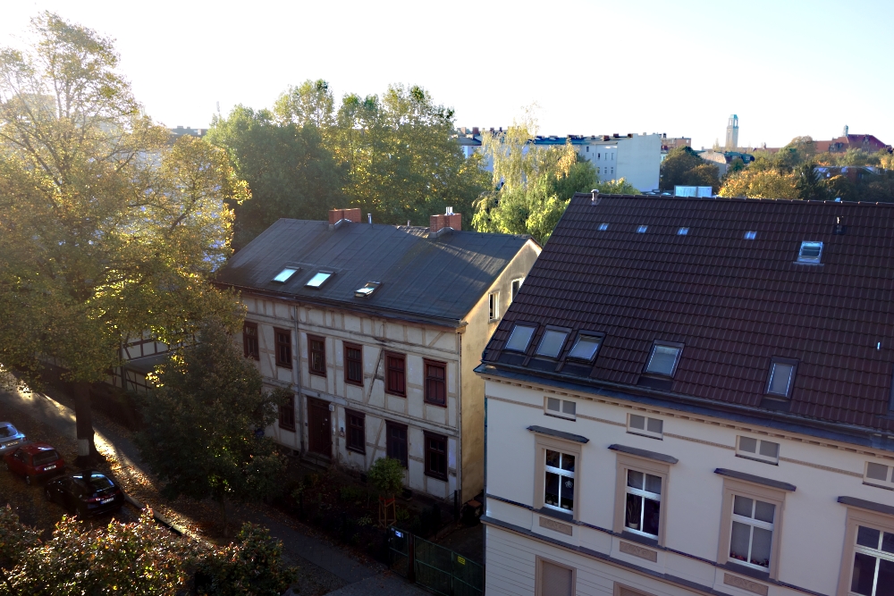 sozusagen ein weiteres Referenzphoto am nächsten Morgen. Und siehe da, der Nebel ist weg, die Sonne scheint. Und der Hintergrund ist wieder da: Rathaus Spandau in 800 Meter Entfernung.