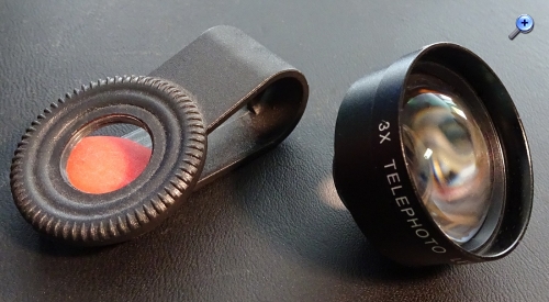 Smartphones mit einer Normalbrennweite kann man durch Aufschiebe-Tele-Konverter etwas aufpeppen. Dabei ist nicht selten die exakte und stabile Positionierung des Aufsatzes nicht unproblematisch. Es gibt einfache, billige Konverter und auch höherwertige teuere Vorsätze.
