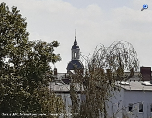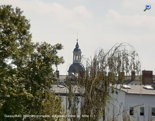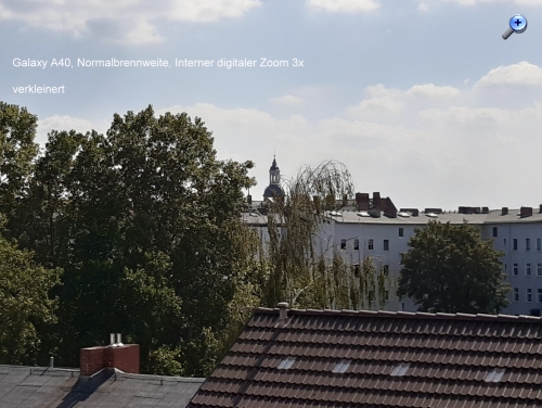 Jedenfalls ist das Ergebnis besser, als wenn man den eingebauten digitalen Zoom in Stellung 3x der A40-Kamera verwendet. Siehe die folgenden Fotos.