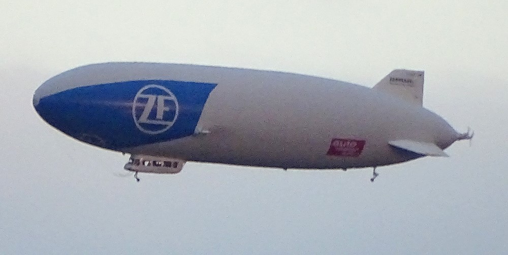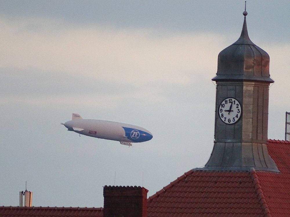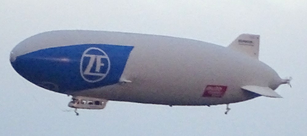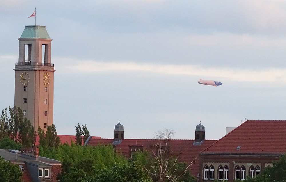 Das Motiv: Ein echtes Zeppelin-Typ-Luftschiff, welches sich zwischen dem Olympiastadium und der City von Spandau in ca. vier km Entfernung hin-und-her bewegte.