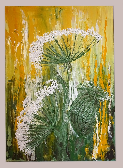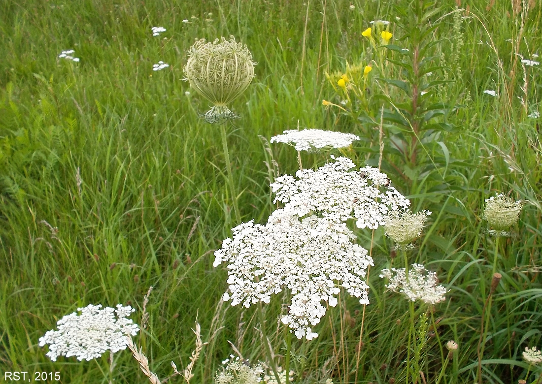 Zu sehen ist eine "wilde Möhre". Interessant, wie sich die große Flach-Blüte später zu diesen "Kugeln" zusammendreht. Ich habe daheim ein Ölbild mit der wilden Möhre an der Wand. Als ich die Planzen in beiden Blüten-Zuständen irgendwo am Strassenrand sah, kam mir die ST30 gerade recht. Ich hatte die Pflanze zuvor nie mit der zusammengezogenen Blüte gesehen. Deshalb der Fokuspunkt wie oben beschrieben.