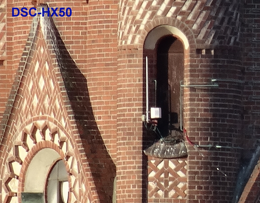 Tatsächlich liegen beide Objektive in etwa gleich. Obwohl beide Objektive im Telebereich relativ lichtschwach sind, gelingen bei Sonnenschein gute Teleaufnahmen. Bei beiden Aufnahmen ist keine Luftschlierenbildung zu beobachten. Die Aufnahme der HX50 wirkt ein Hauch schärfer, die Kamera hat das Motiv mit einer Blendenstufe weniger als bei der HX90 aufnehmen können.